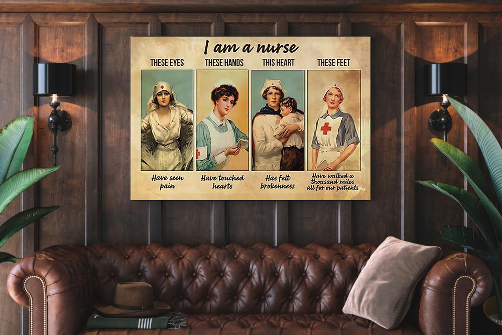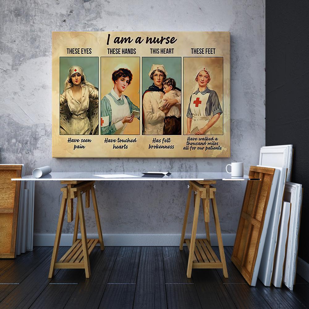 I Am A Nurse Poster | These Eyes Have Seen Pain, These Hands Have Touched Hearts, This Heart Has Felt Brokenness, These Feet Have Walk A Thousand Miles And For Our Patients Single Canvas Rectangle 06666