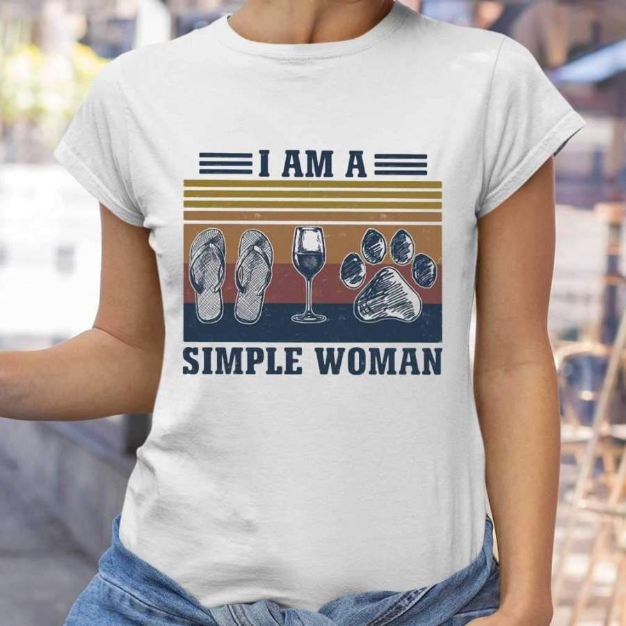I Am A Simple Woman Flip Flop Wine Paw Vintage T-shirt