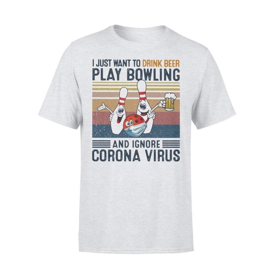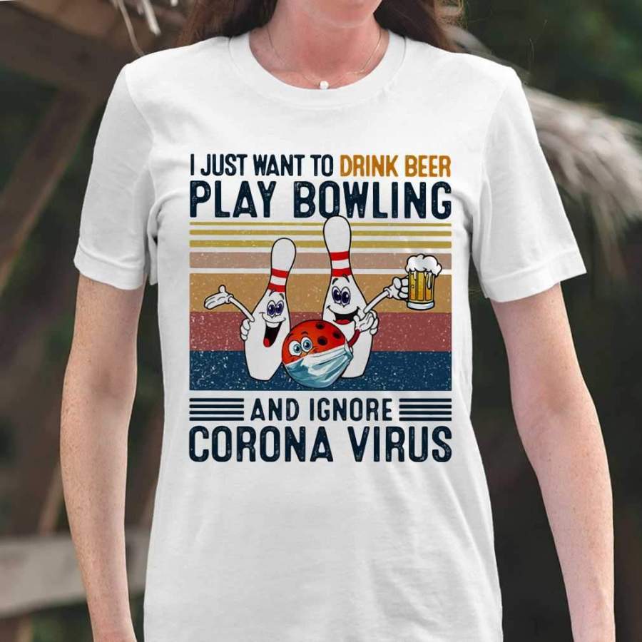 I Just Want To Drink Beer Play Bowling And Ignore Corona Virus Vintage Retro T-shirt