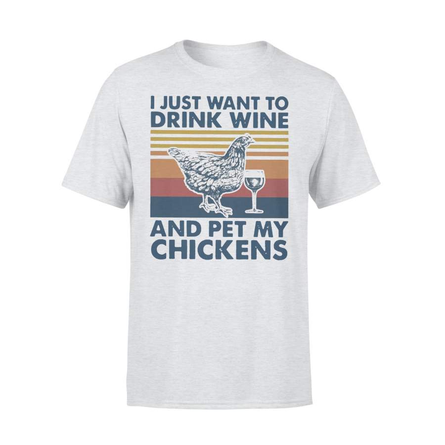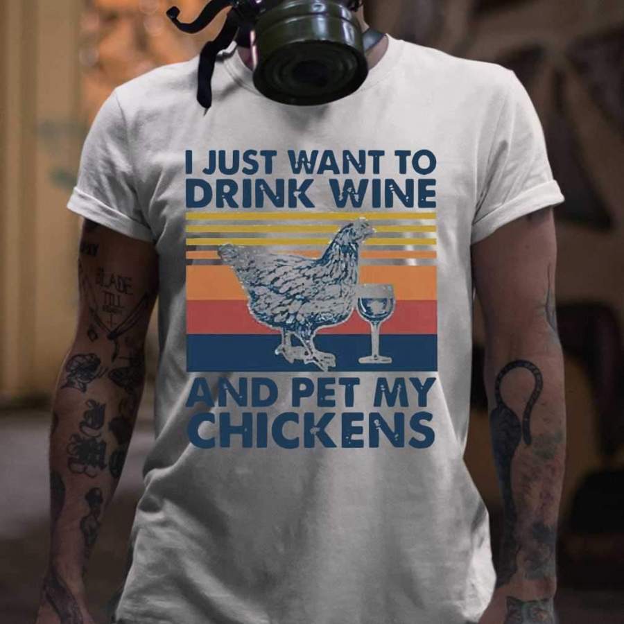 I Just Want To Drink Wine And Pet My Chickens Farmer Vintage T-shirt