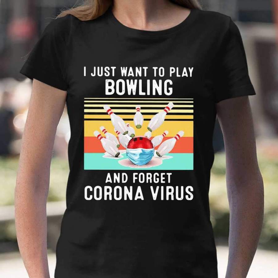 I Just Want To Play Bowling And Forget Corona Virus Vintage Retro T-shirt