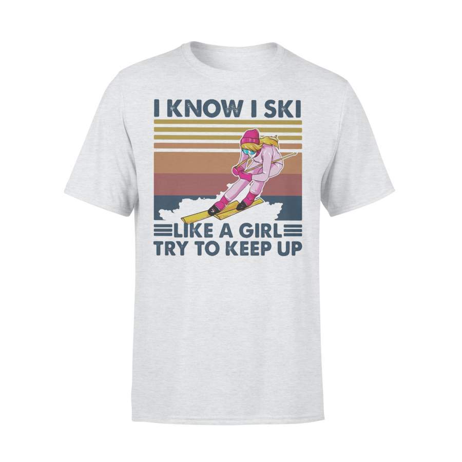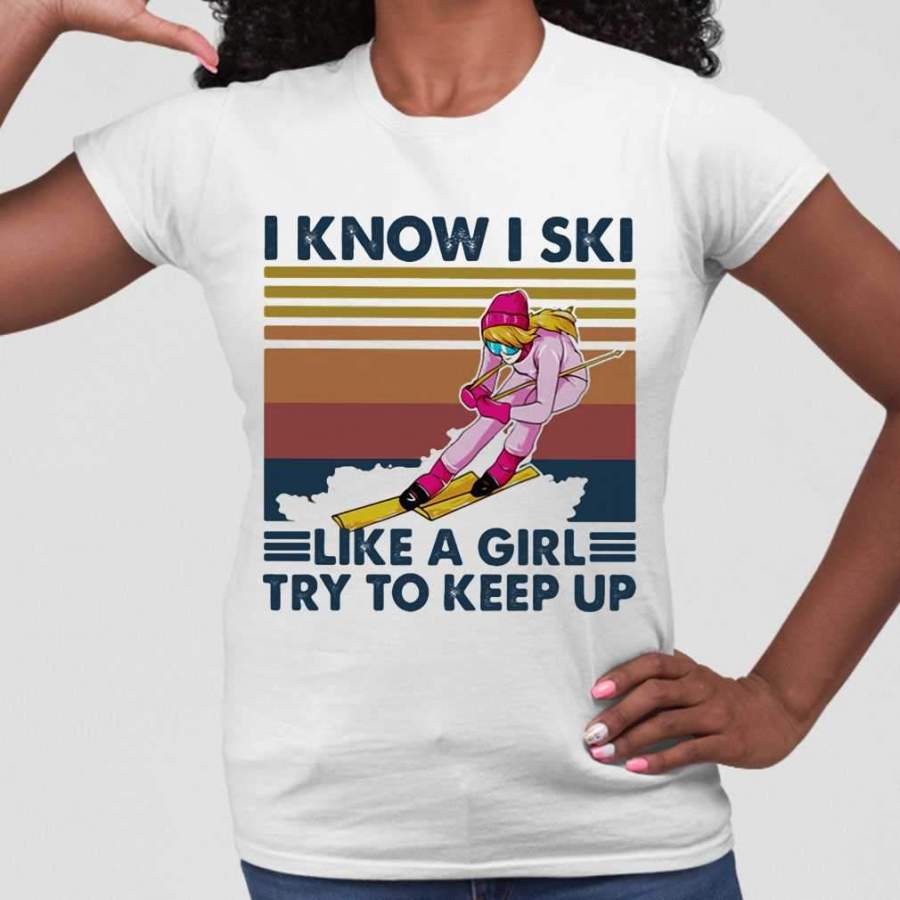 I Know I Ski Like A Girl Try To Keep Up Vintage Retro T-shirt