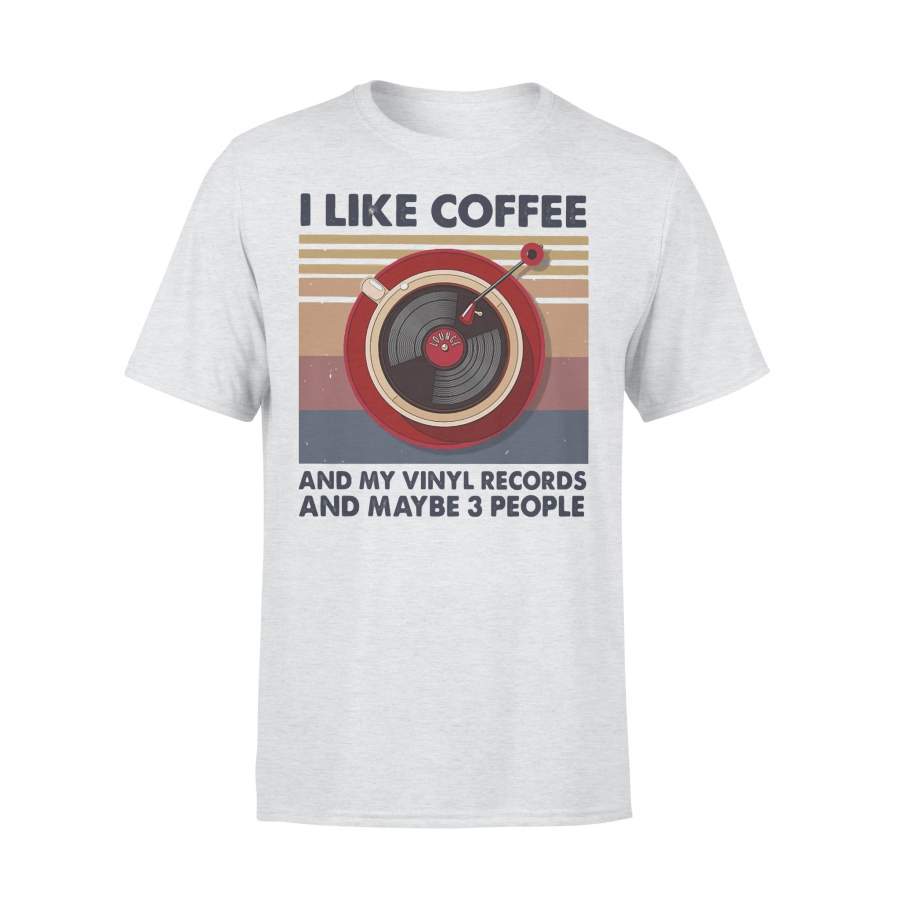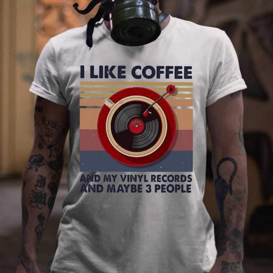 I Like Coffee And My Vinyl Records And Maybe 3 People Vintage Retro T-shirt