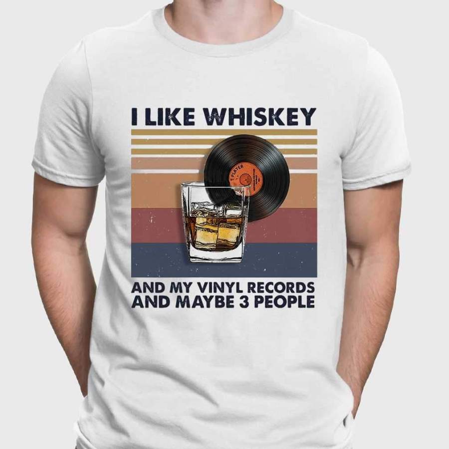I Like Whiskey And My Vinyl Records And Maybe 3 People Vintage T-shirt