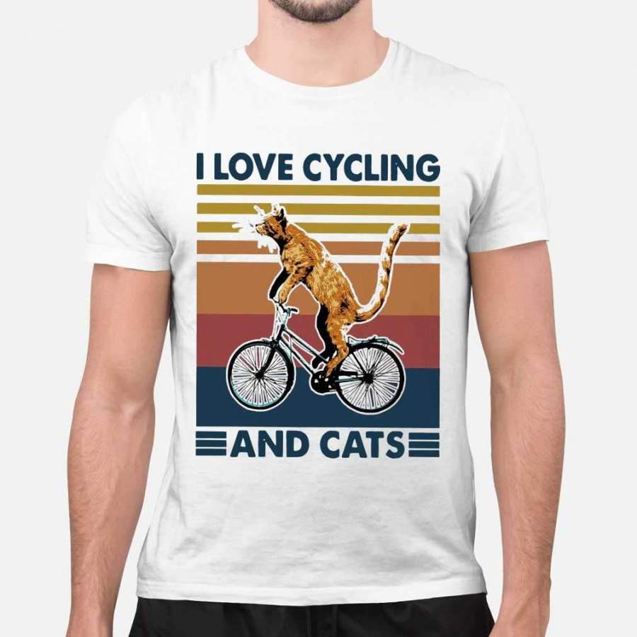 I Love Cycling And Cats Vintage T-shirt