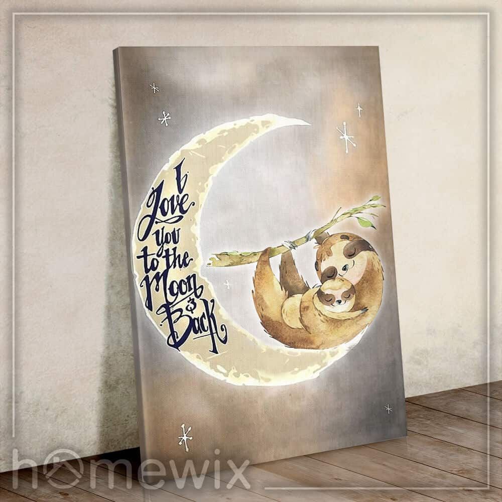I Love You To The Moon & Back, Sloth Canvas And Poster – Wall Decor