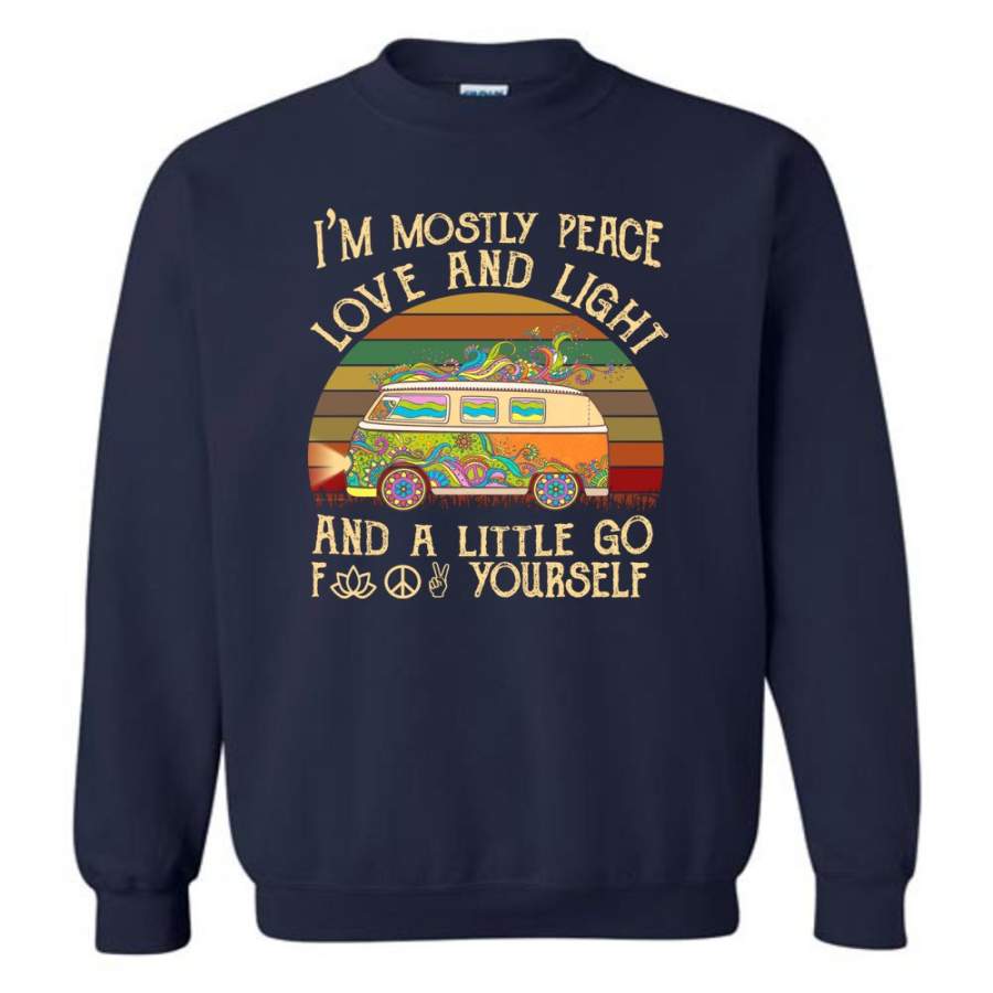 I’m mostly peace love and light and a little go fuck yourself hippie car vintage Tee shirt