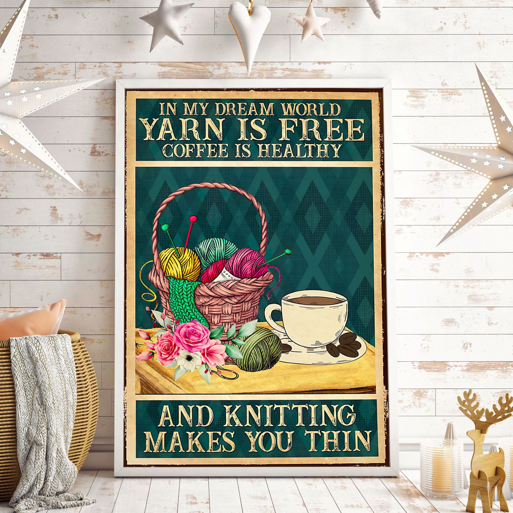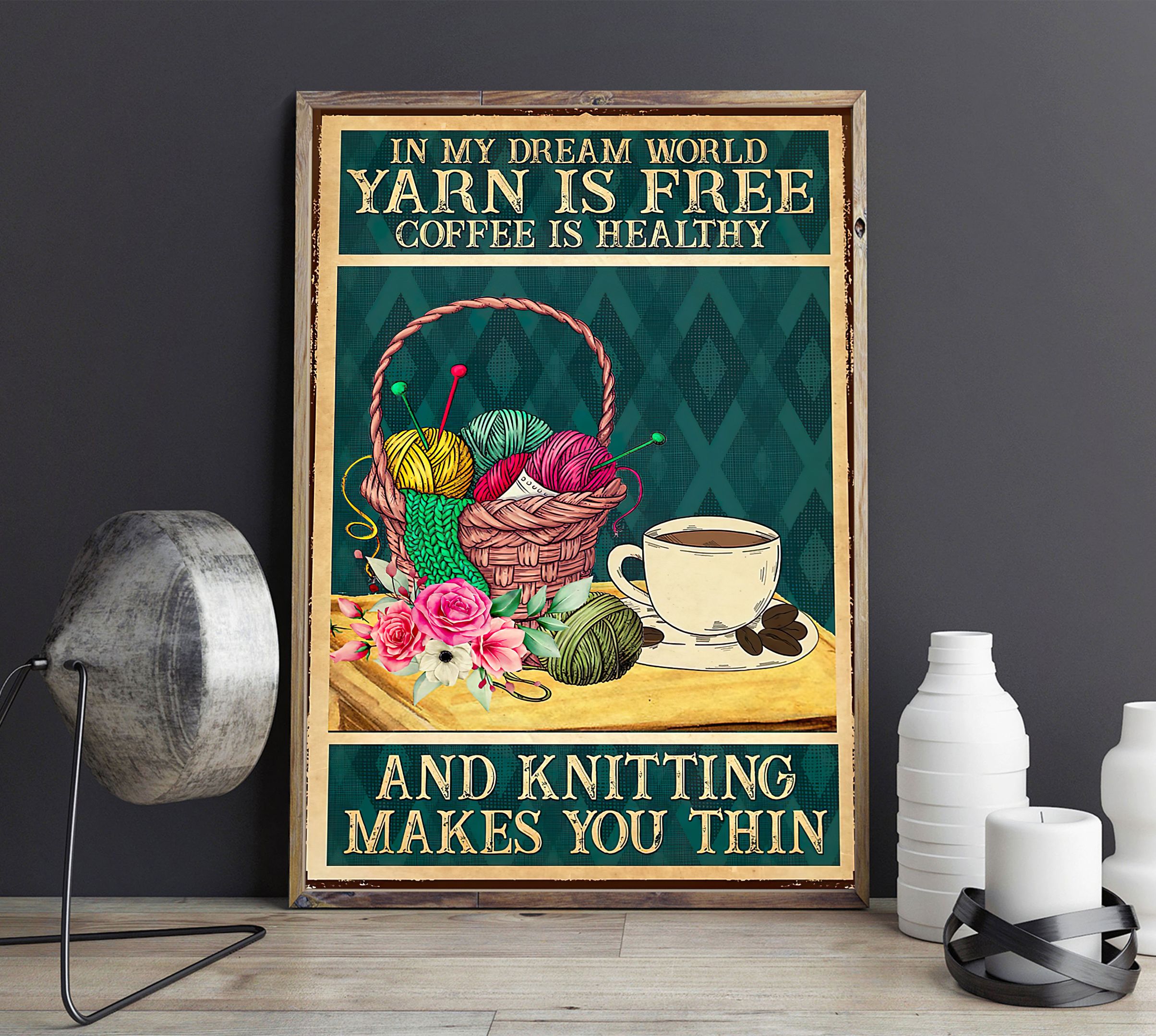 In My Dream World Yarn Is Free Coffee Is Healthy And Knitting Makes You Thin Vertical Poster