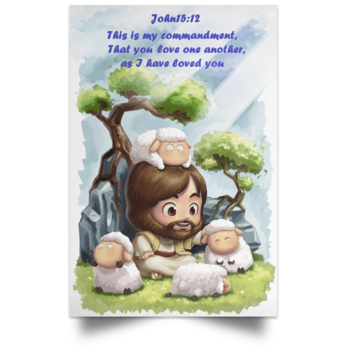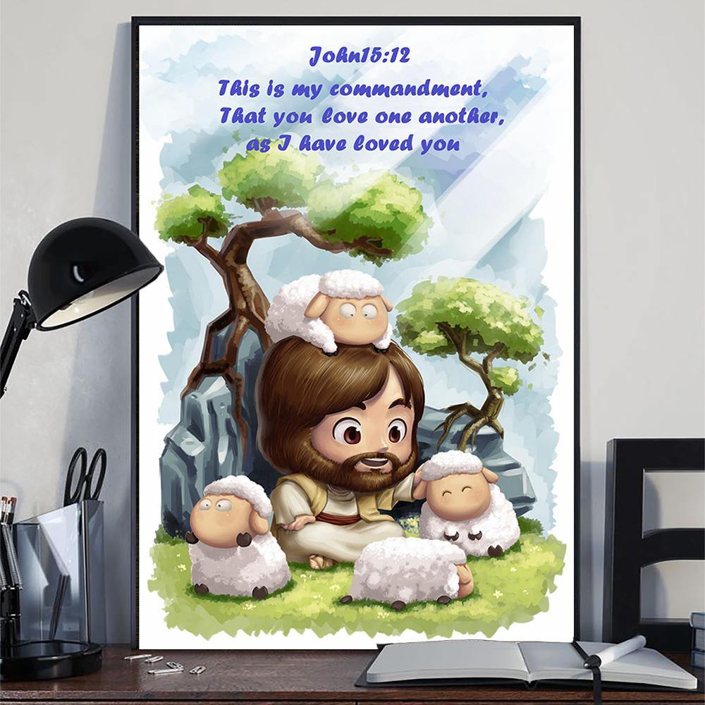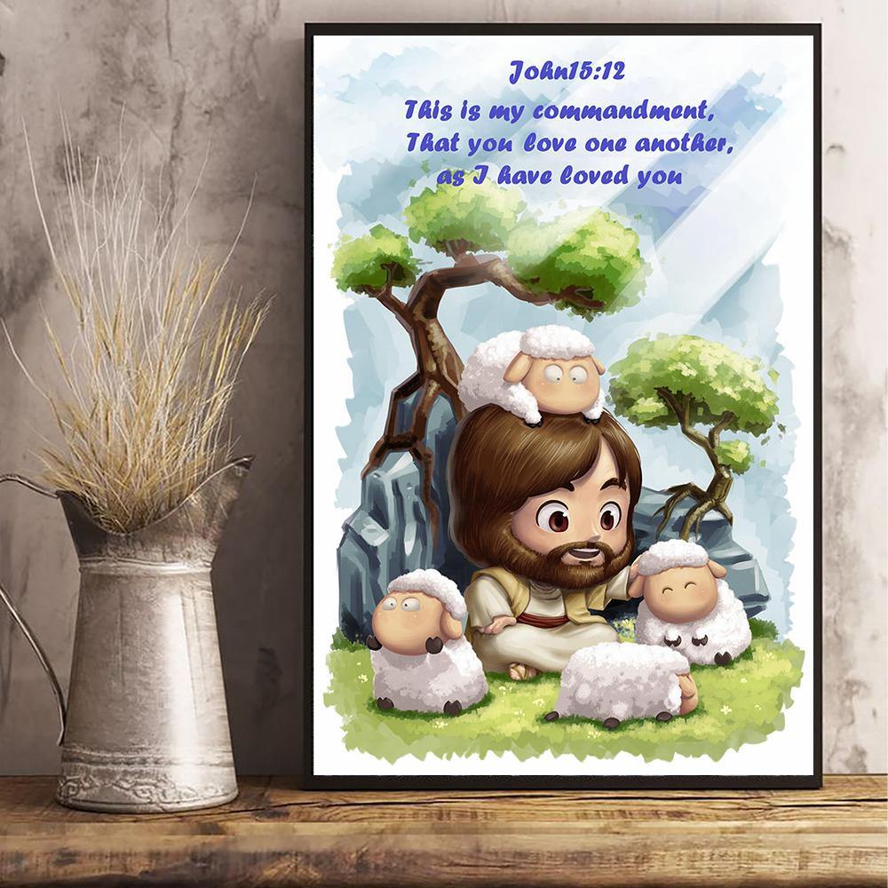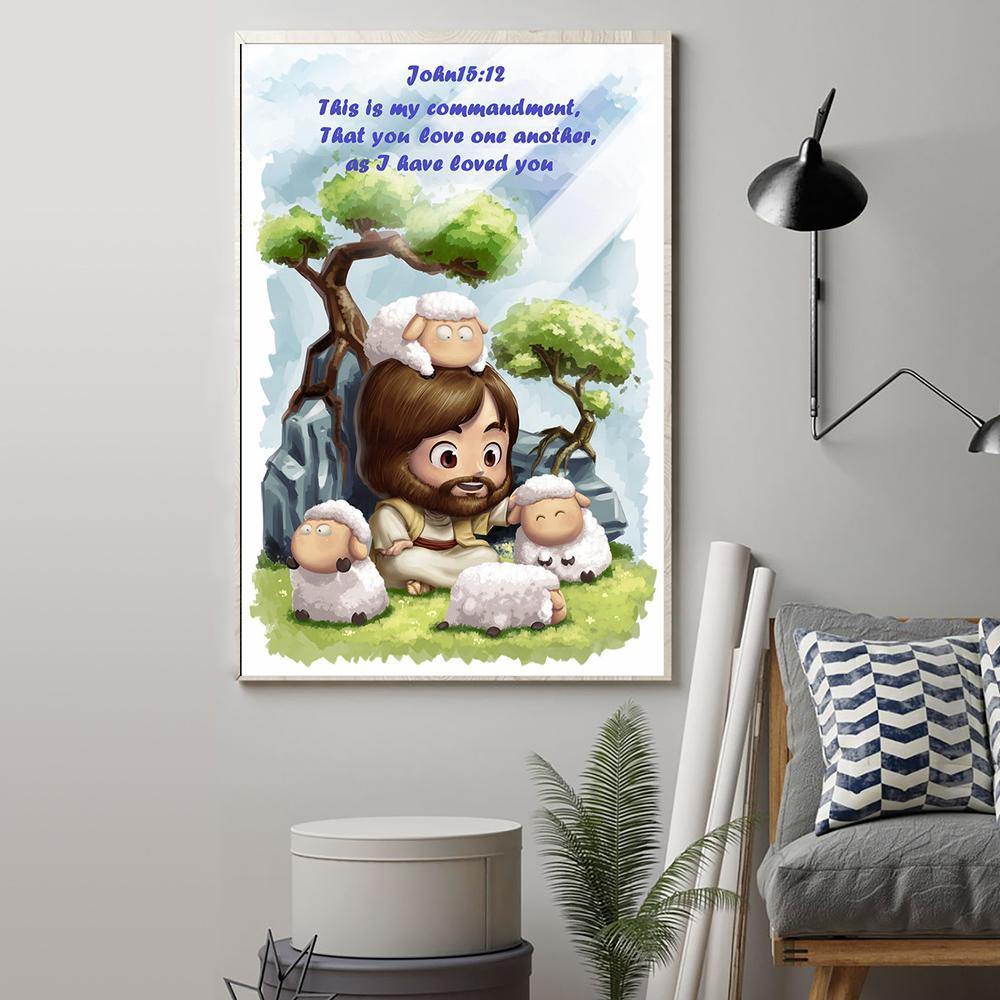 Jesus And Lambs Bible Verse Poster This Is My Commandment Christian Wall Decor Gift Idea