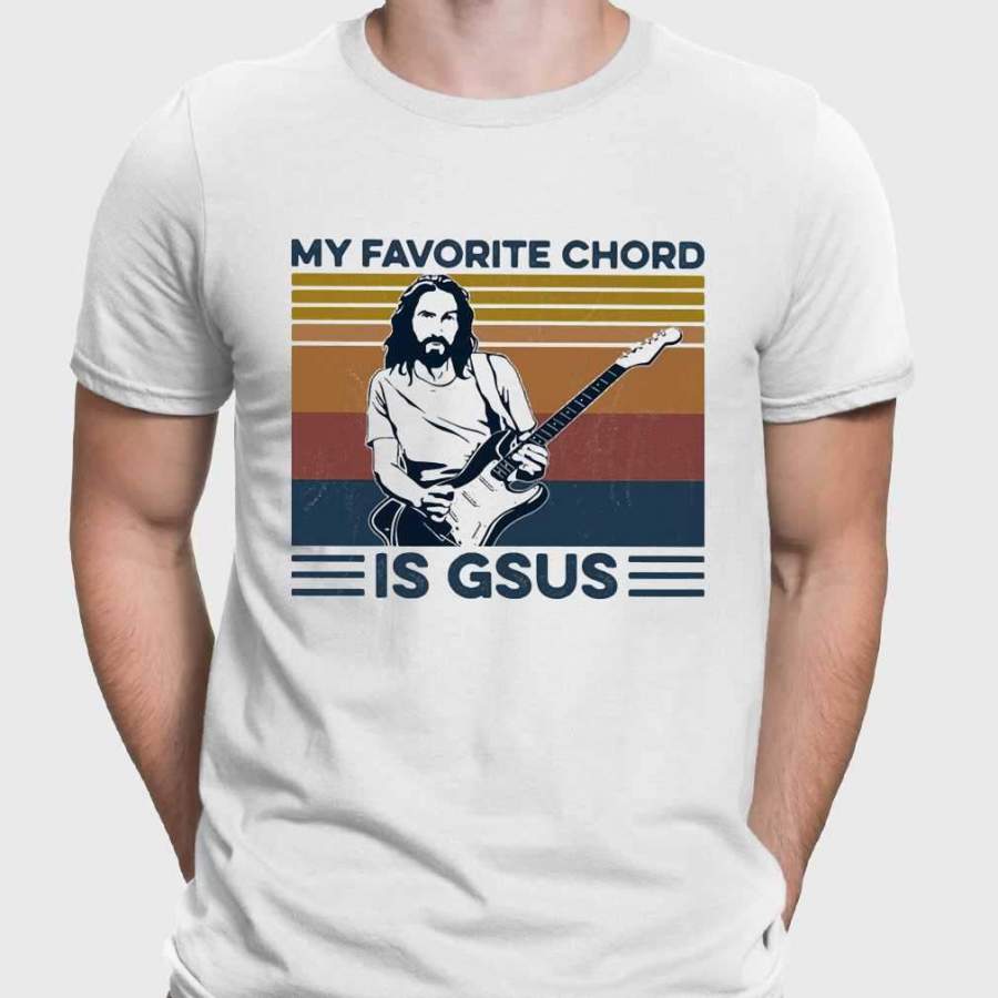 Jesus Guitar My Favorite Chord Is Gsus Vintage Retro T-shirt
