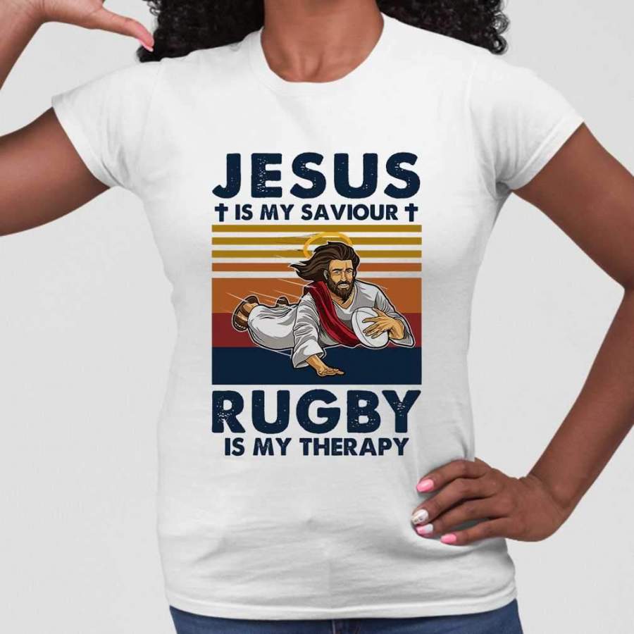 Jesus Is My Saviour Rugby Is My Therapy Vintage Retro T-shirt