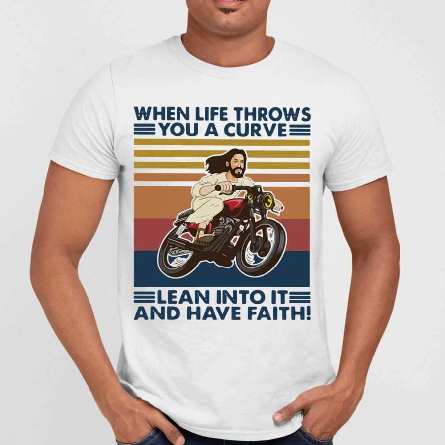Jesus Mororcycle When Life Throws You A Curve Lean Into It And Have Faith Vintage T-shirt