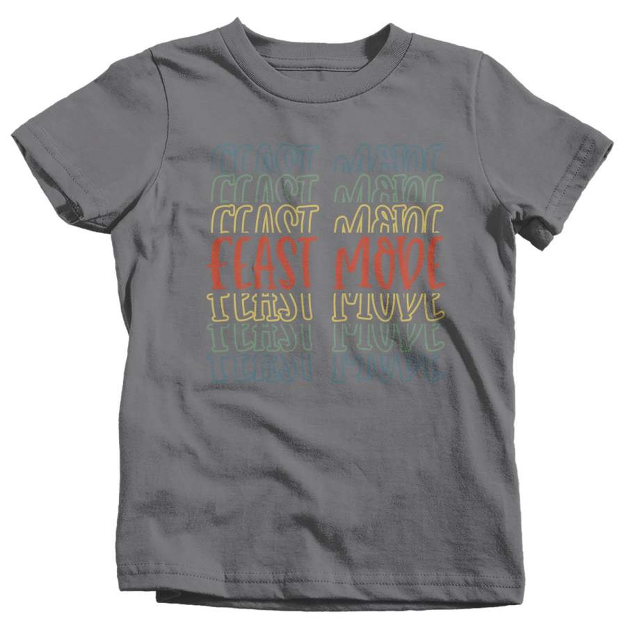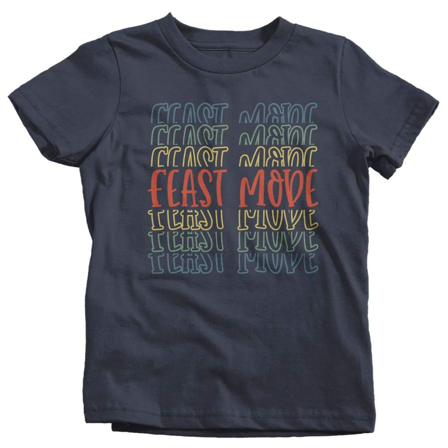 Kids Cute Thanksgiving T Shirt Feast Mode Shirt Fun Stacked Font Mirror Text Retro Tshirt Vintage Thanksgiving T-Shirt