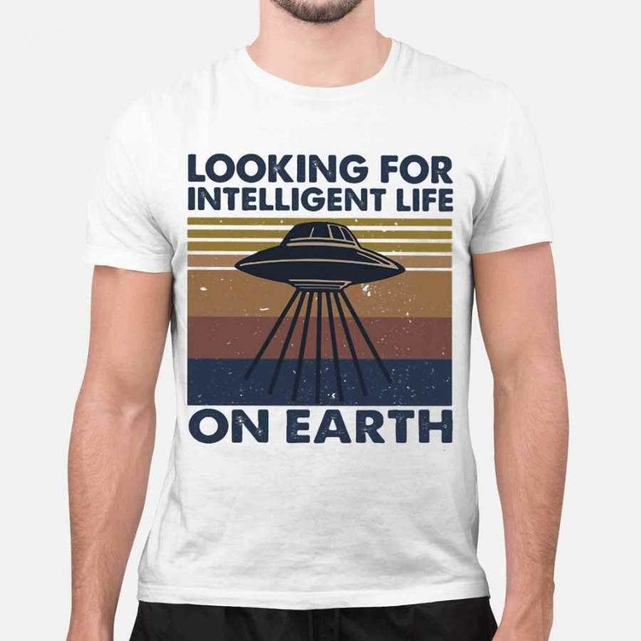 Looking For Intelligent Life On Earth Ufo Vintage Retro T-shirt