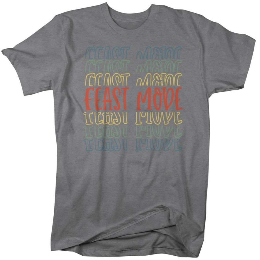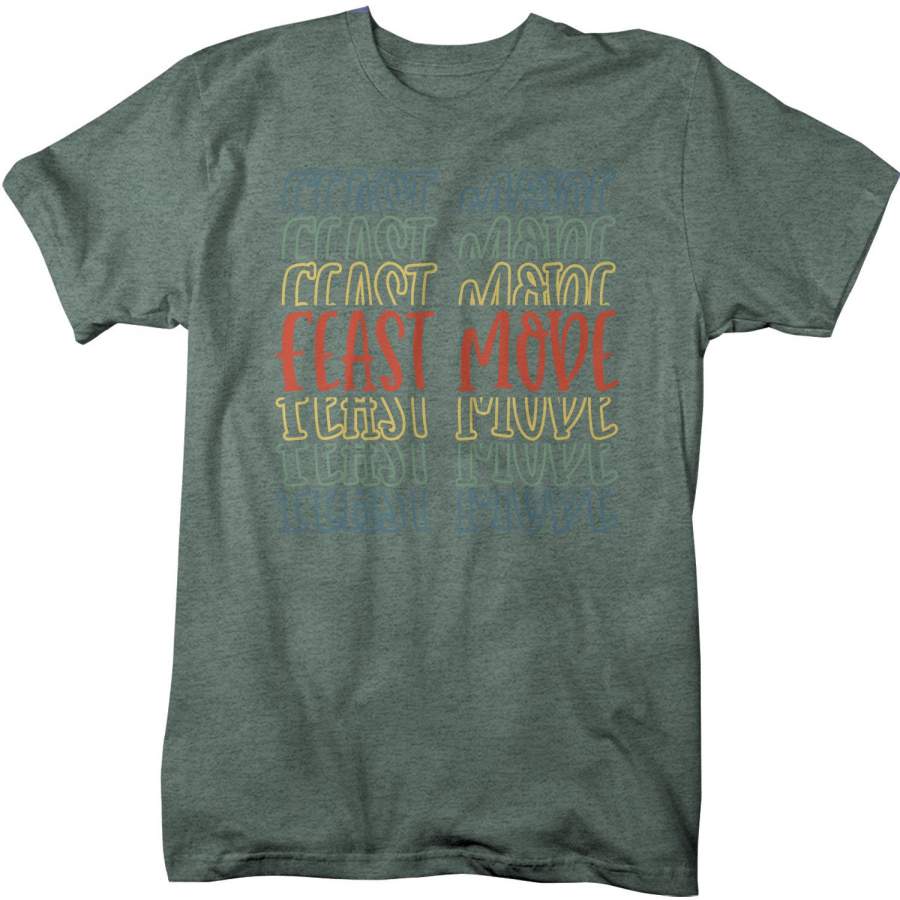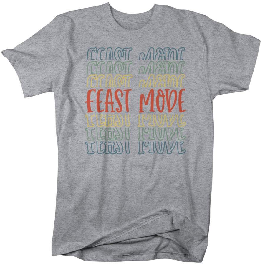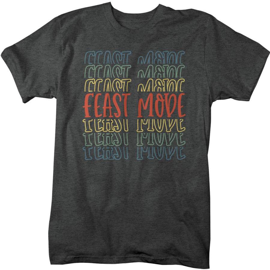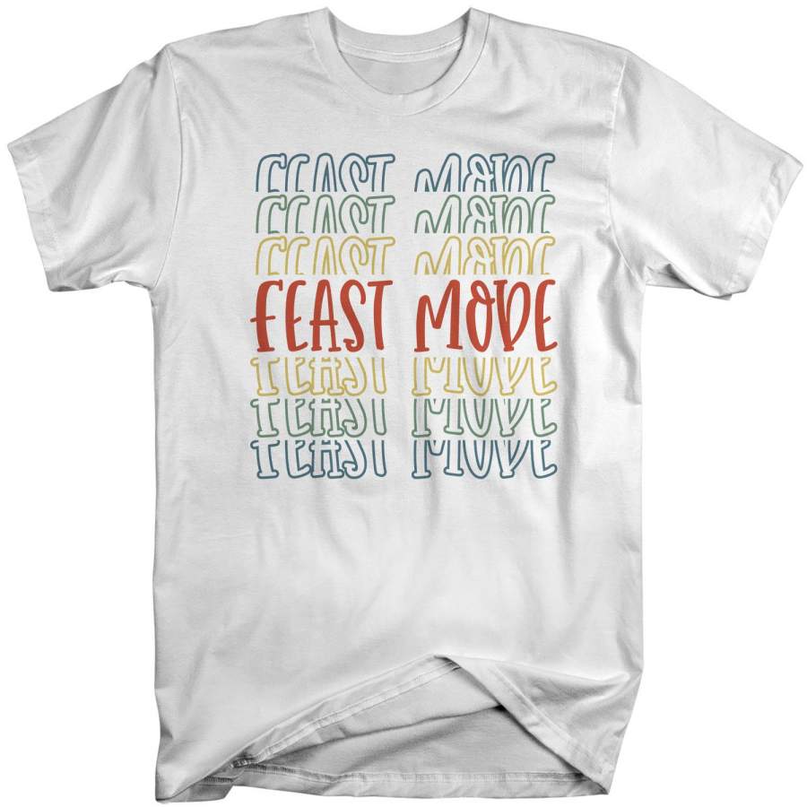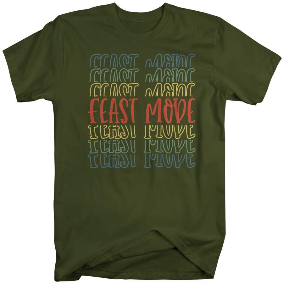 Men’s Cute Thanksgiving T Shirt Feast Mode Shirt Fun Stacked Font Mirror Text Retro Tshirt Vintage Thanksgiving T-Shirt
