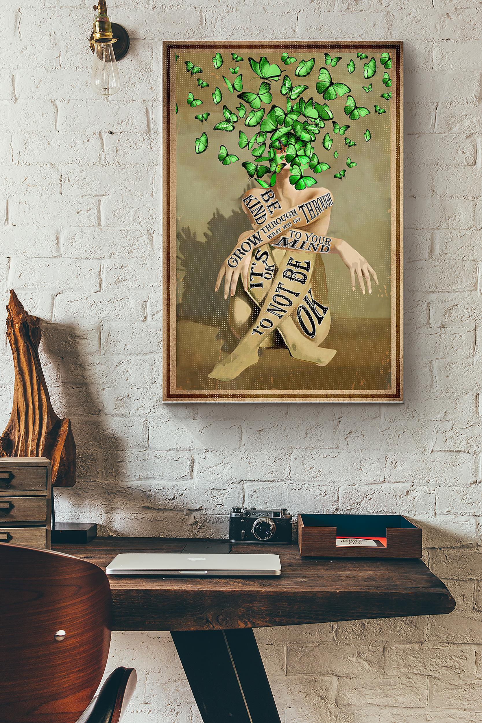 Mental Health Green Butterfly It’S Ok To Not Be Ok Poster Wrapped Canvas