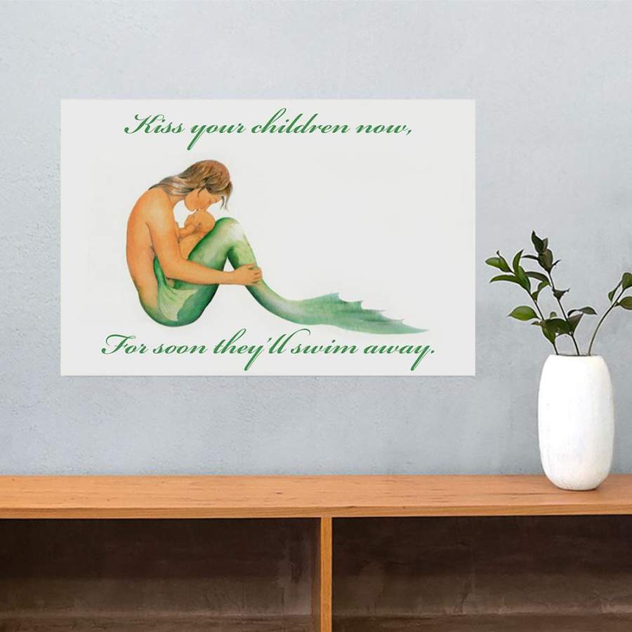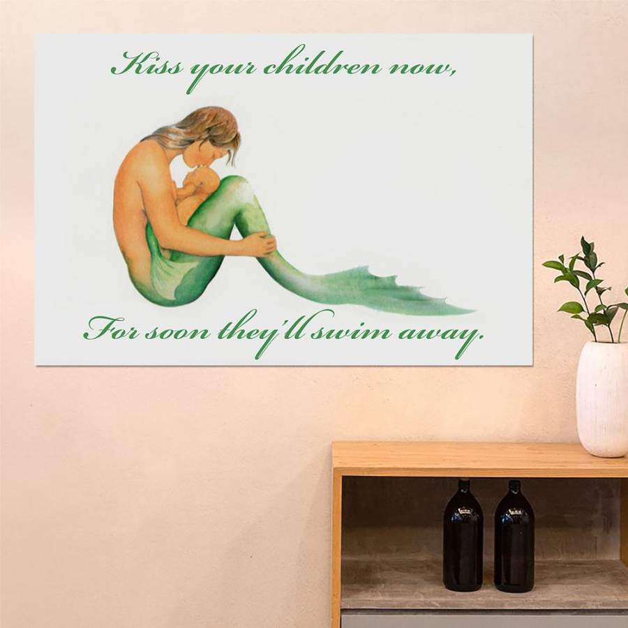 Mermaid And Baby Kiss Your Children Now For Soon They’ll Swim Away Poster For Wall Decoration