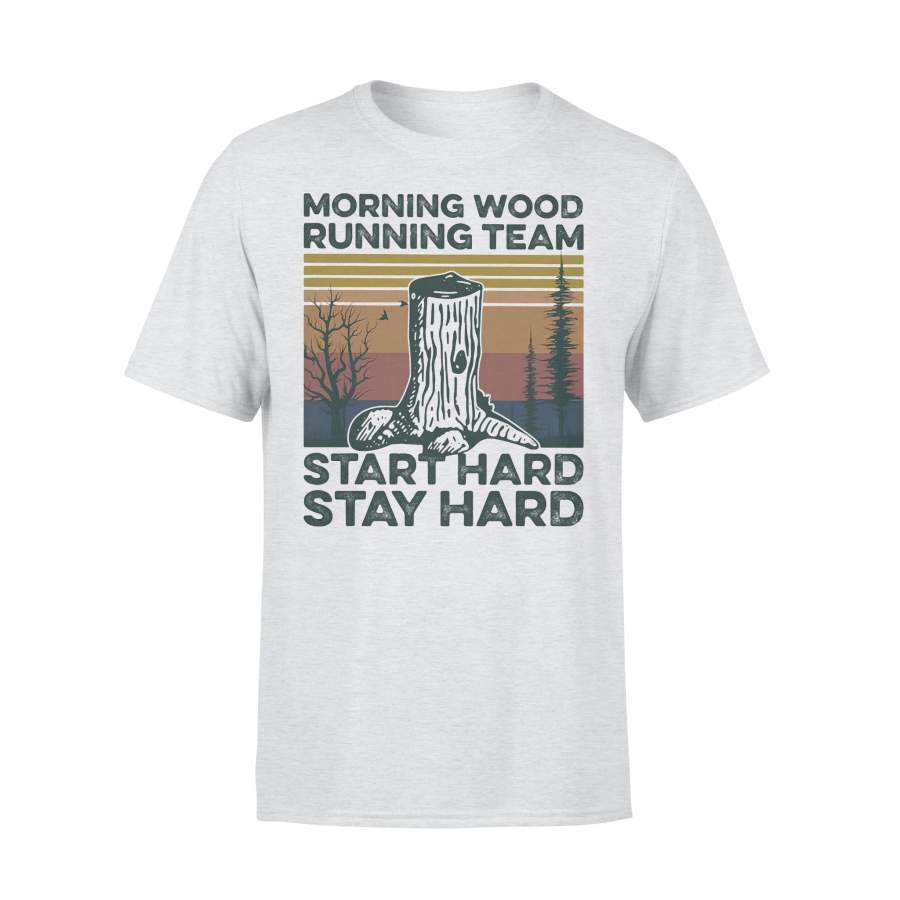 Morning Wood Running Team Start Hard Stay Hard Carpenter Vintage Retro T-shirt