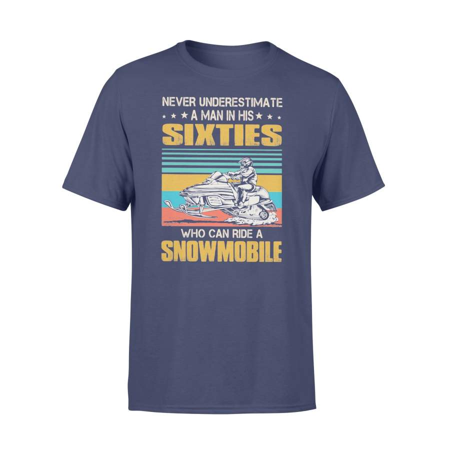 Never Underestimate A Man In His Sixties Who Can Ride A Snowmobile Vintage T-shirt
