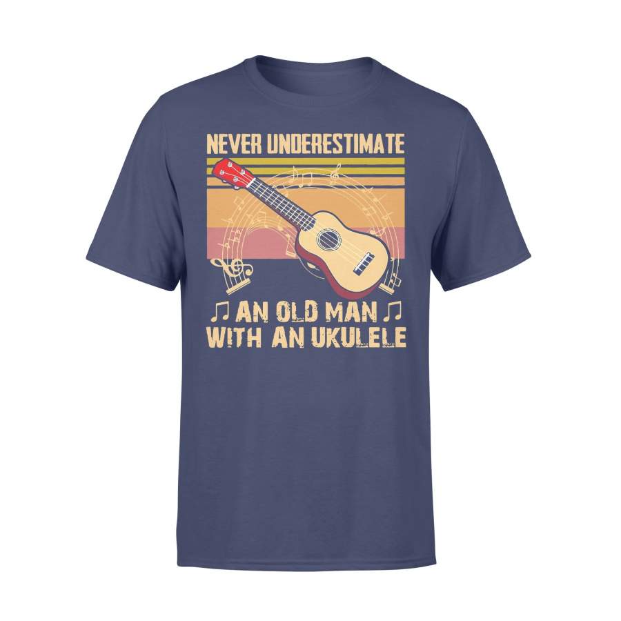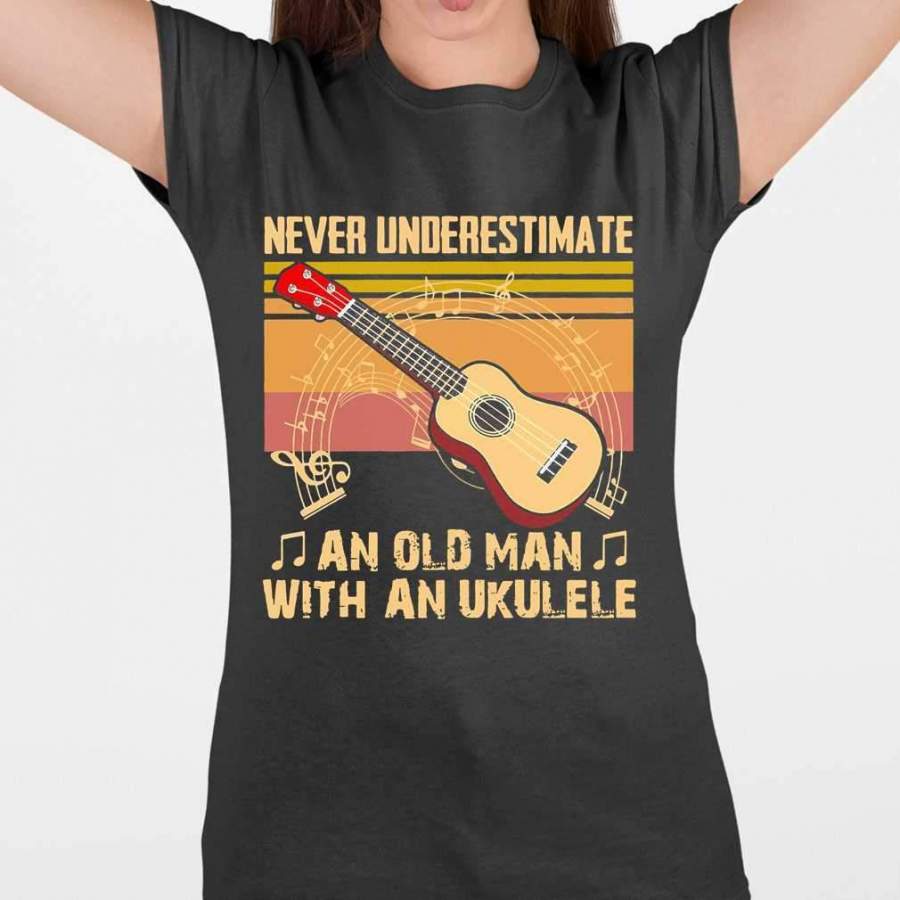 Never Underestimate An Old Man With A Ukulele Vintage Retro T-shirt