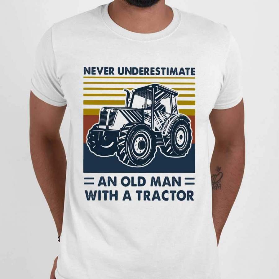 Never Underestimate An Old Man With An Tractor Vintage Retro T-shirt