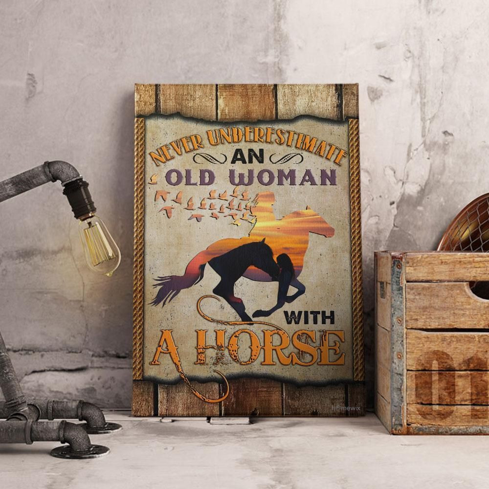 Never Underestimate An Old Woman With A Horse Canvas And Poster Wall Art – Wall Decor