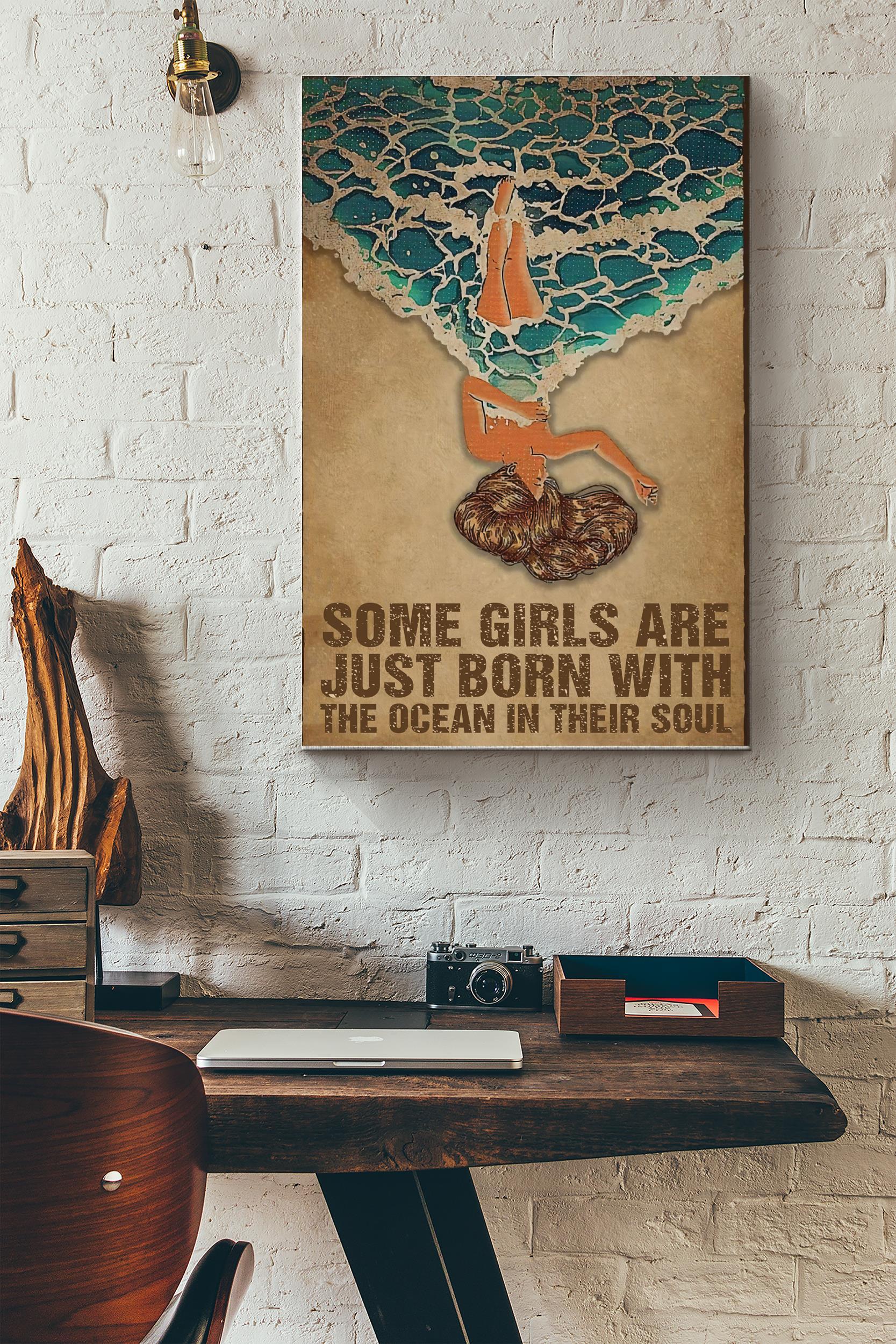 Ocean Loves Poster Some Girls Are Just Born With The Ocean In Their Soul Vintage Wall Art Gifts Wrapped Canvas