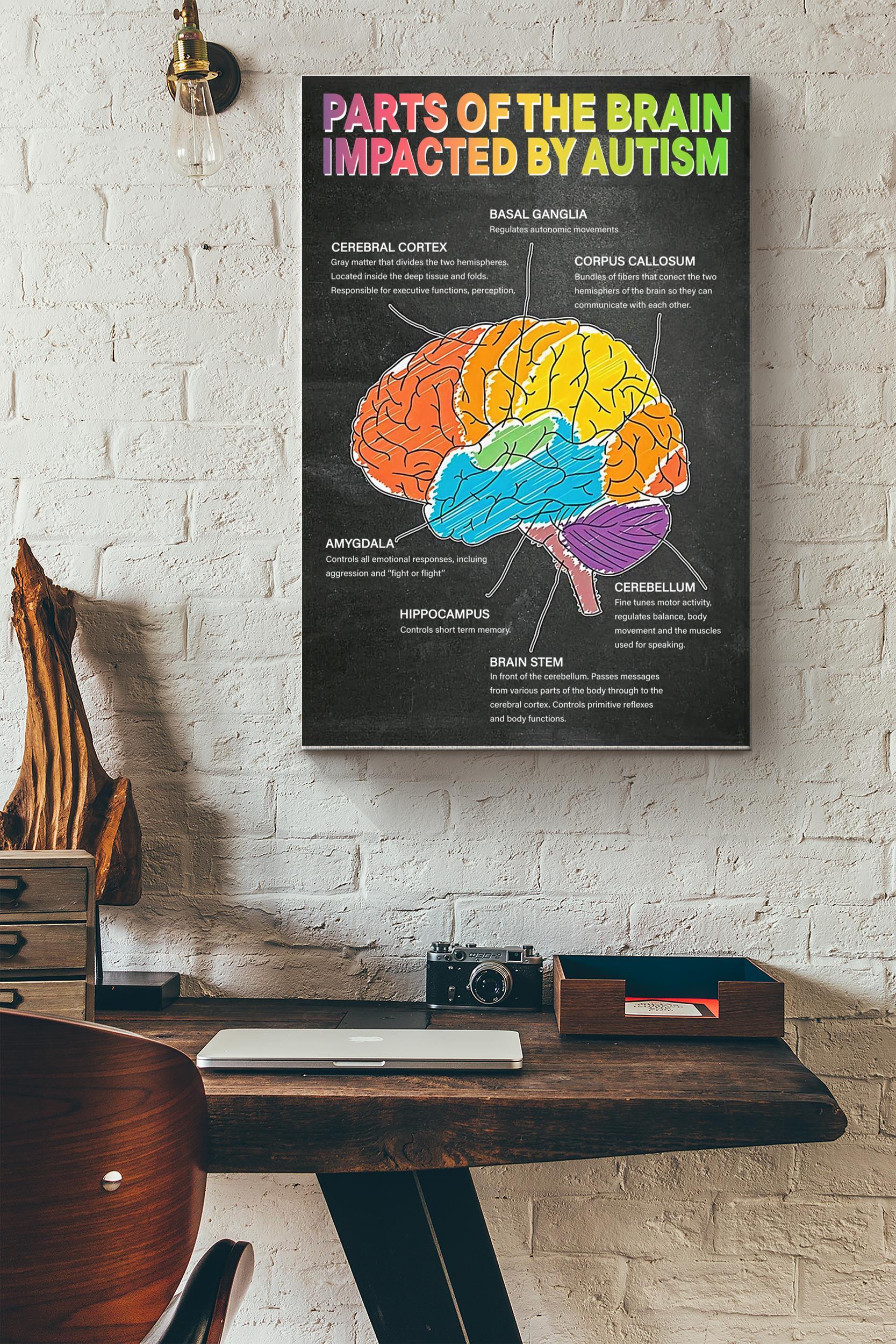 Parts Of The Brain Impacted By Autism Poster – Mental Heath Wall Art – Gift For Therapist Mental Disorder People Autism Wrapped Canvas
