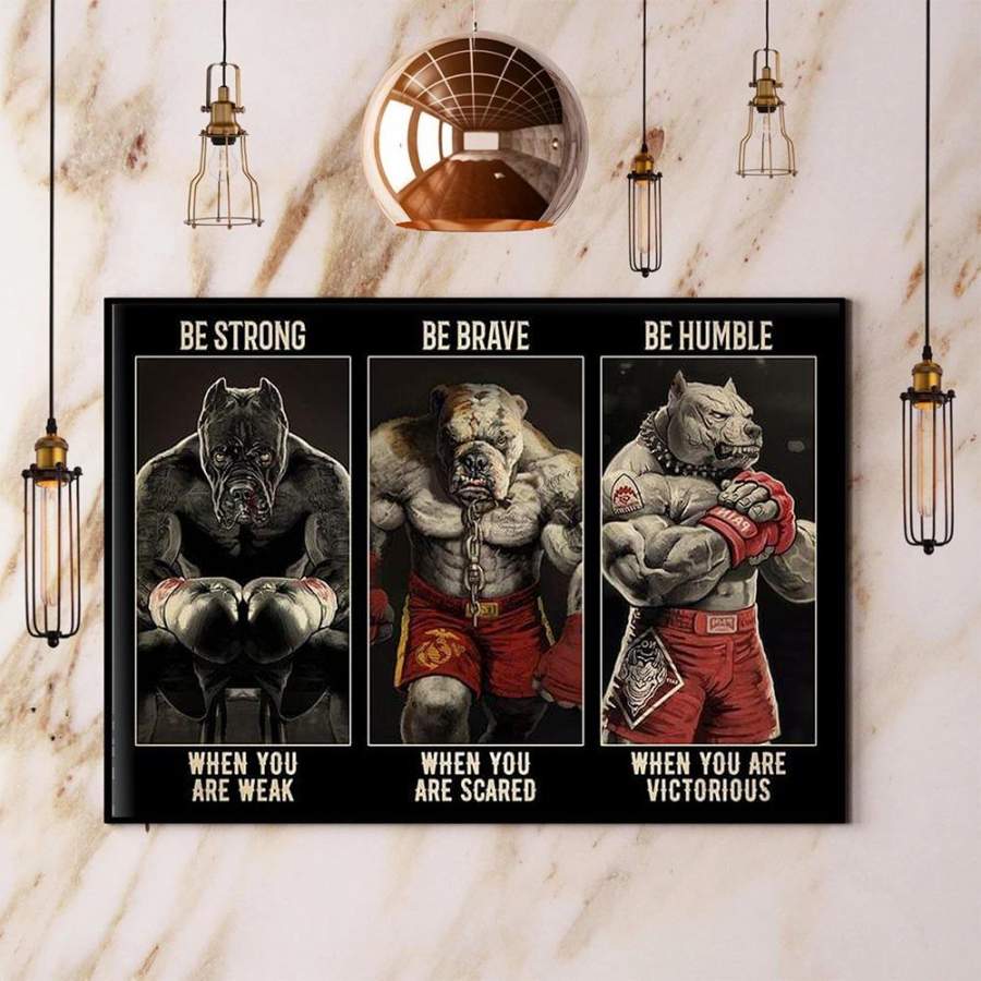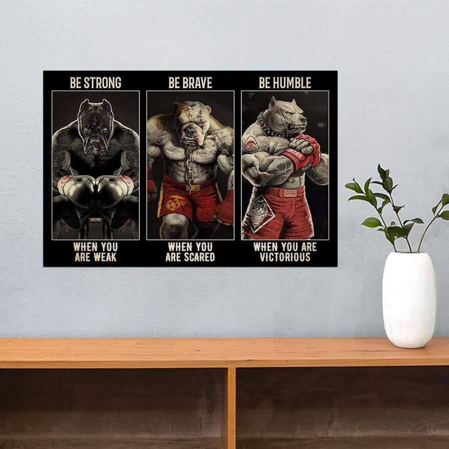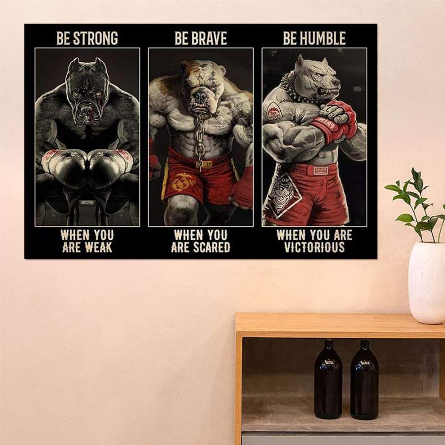 Pitbull Boxer Be Strong Be Brave Be Humble Poster Vintage Wall Art Decor