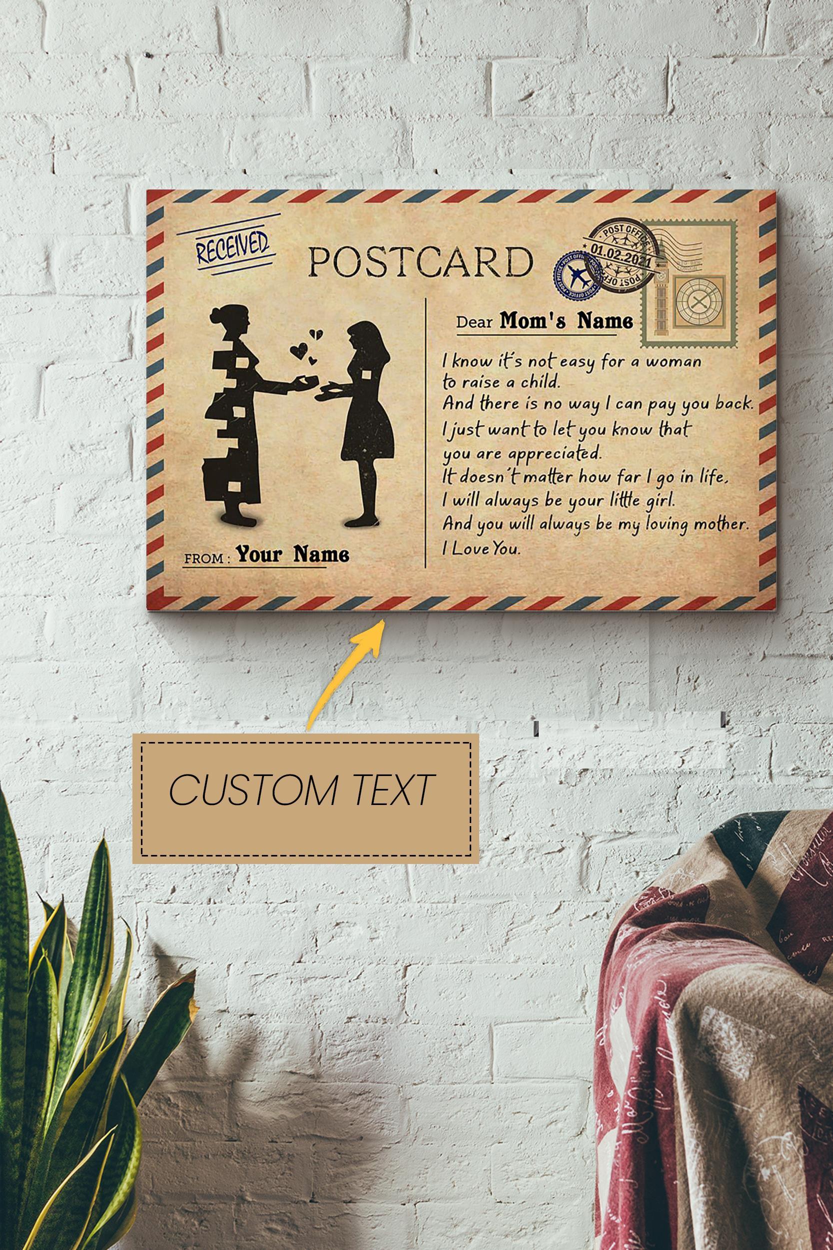 Postcard I Know Its Not Easy For A Woman To My Mom Quotes From Daughter Personalized Poster – Family Wall Art – Gift For Mom Mama Mother’S Day Wrapped Canvas