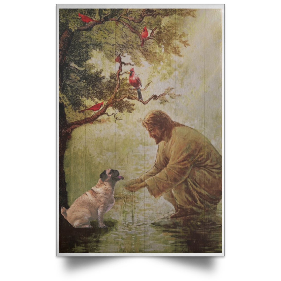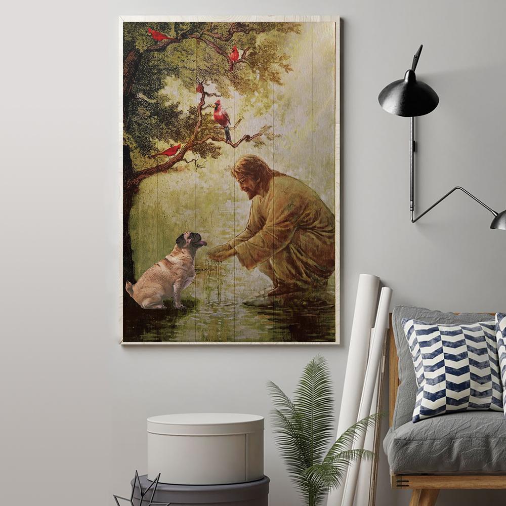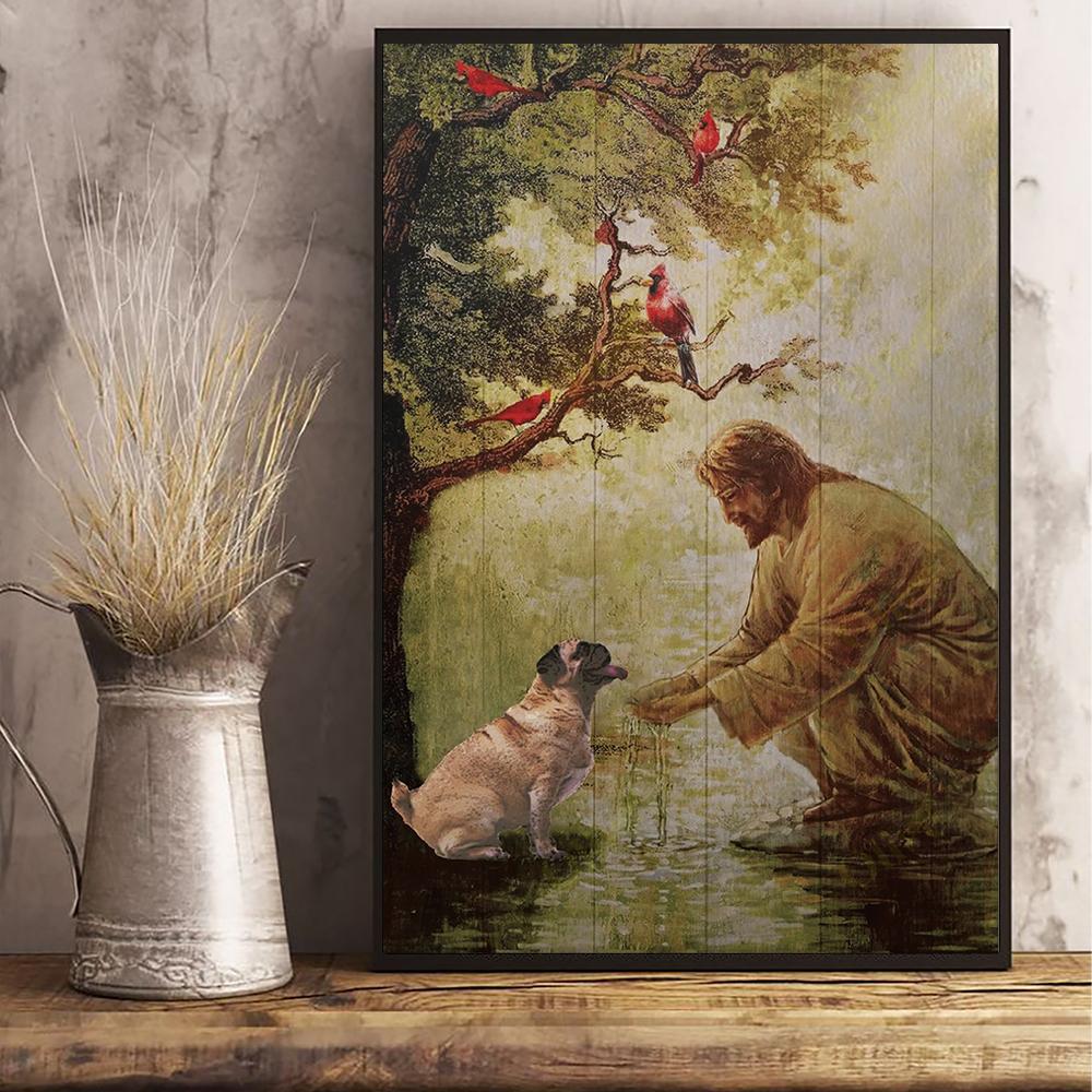 Pug And Jesus Christ Poster Religious Home Decor Wall Picture Gift For Pug Lover