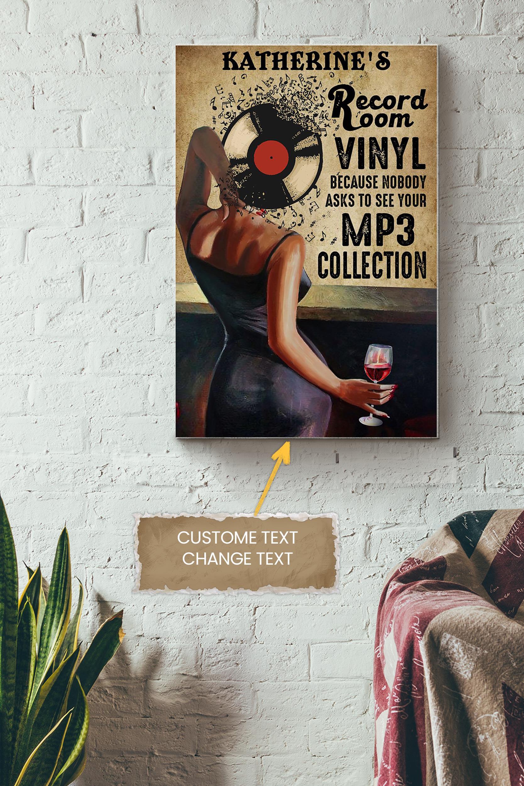 Record Room Personalized Poster – Painting Wall Art – Gift For Women Music Lover Wine Lover Pop Fan Wrapped Canvas