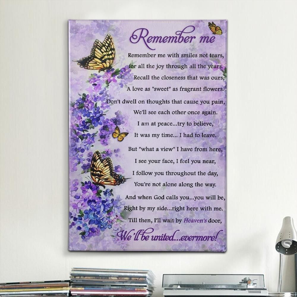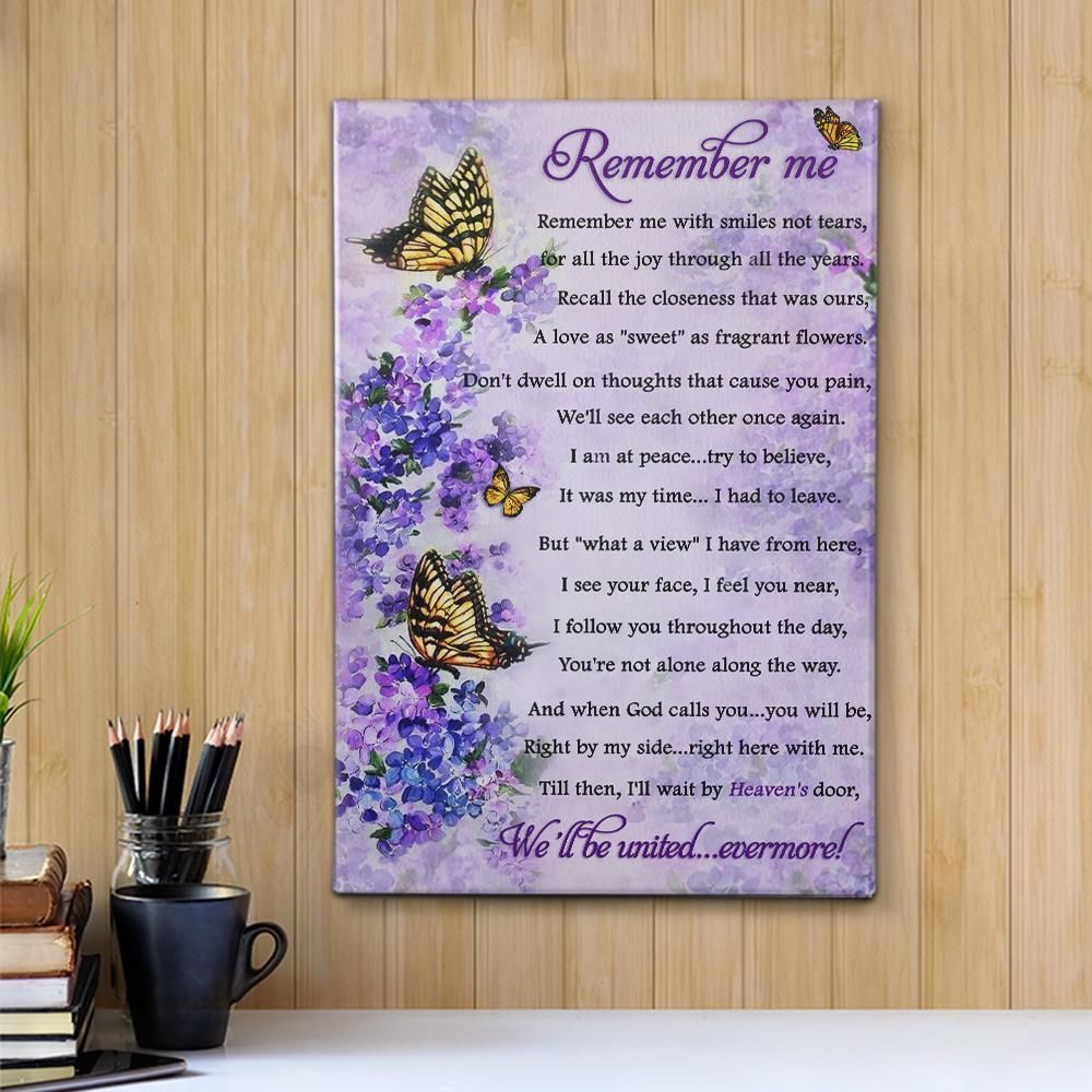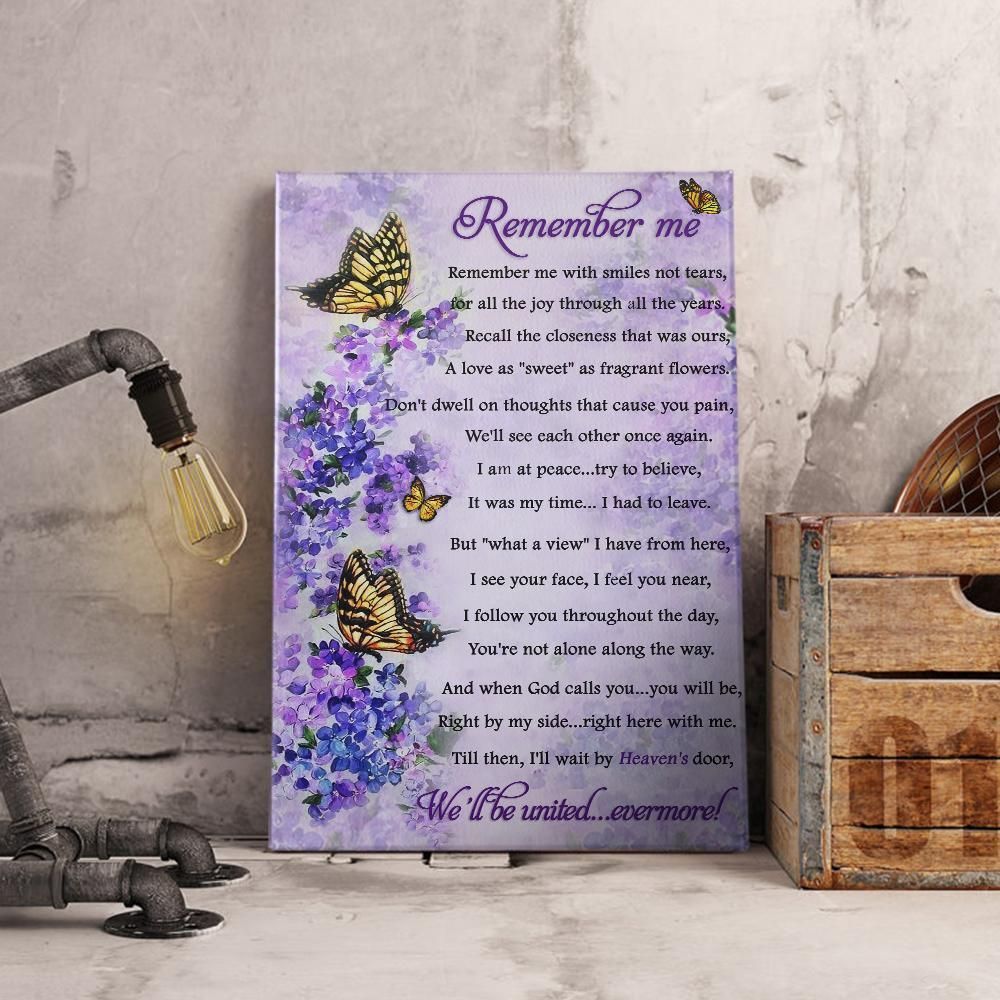 Remember Me With Smiles Not Tears, Butterfly Canvas And Poster – Wall Decor