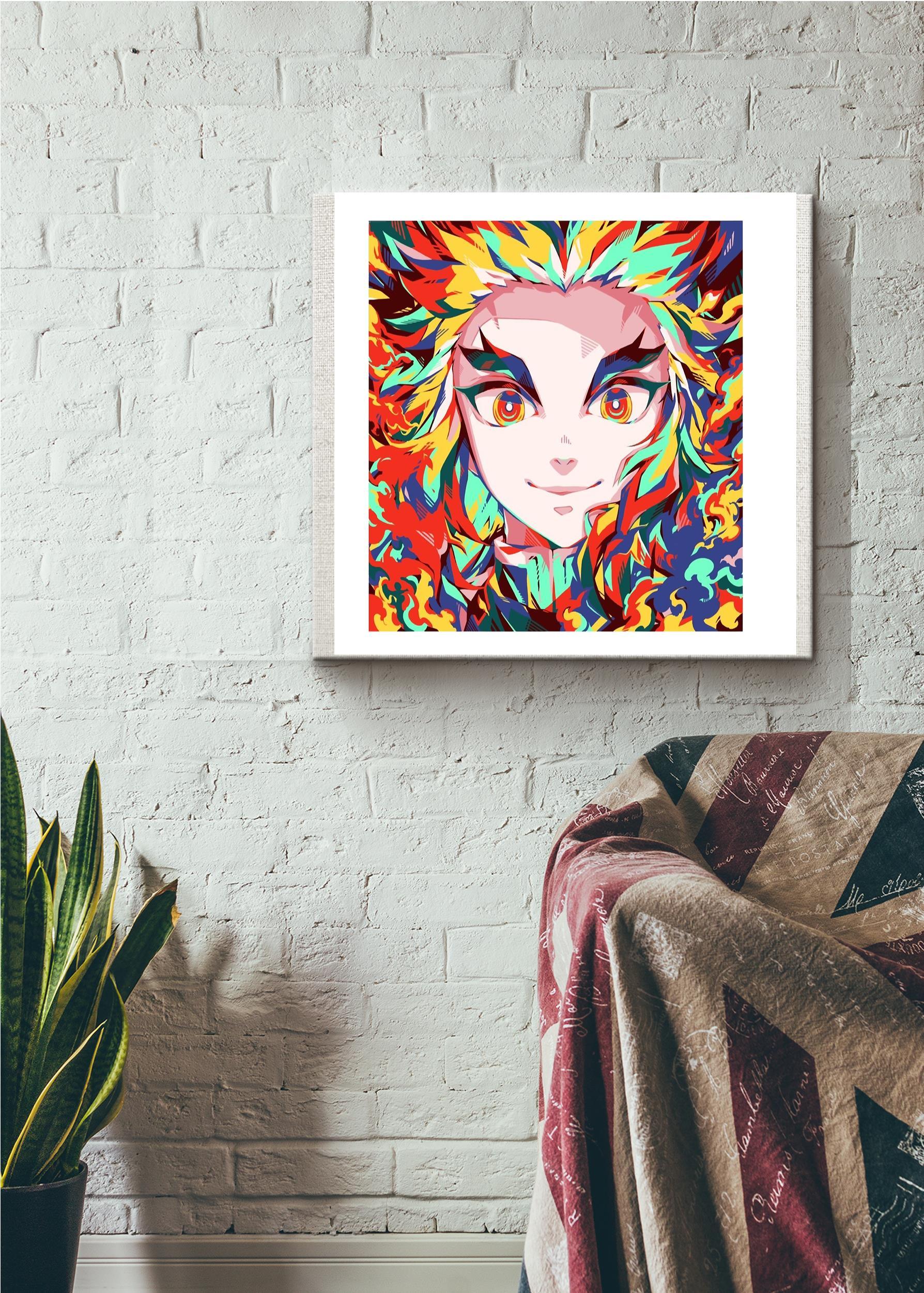 Rengoku Anime Demon Square Poster Wrapped Canvas