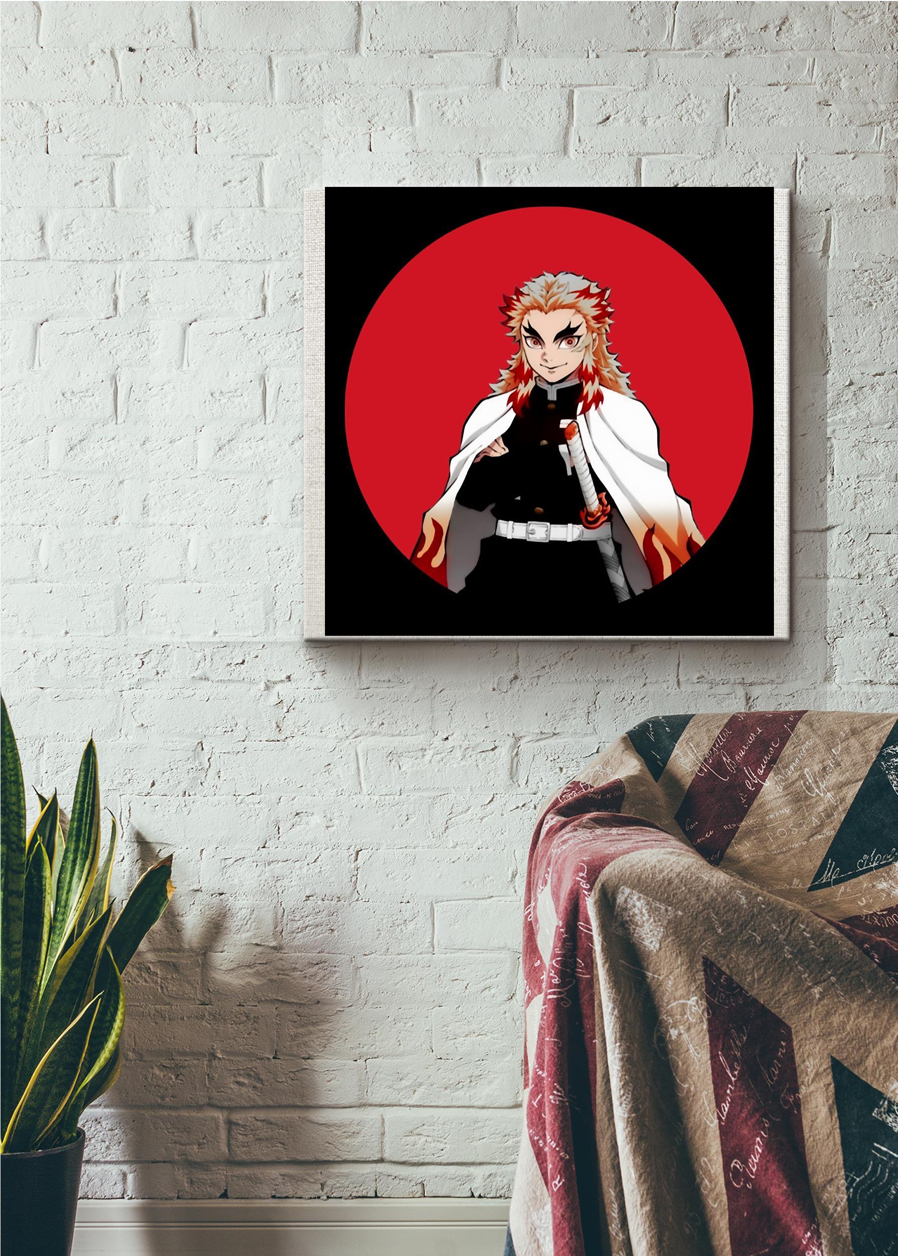 Rengoku Kyojuro Poster Square Red Moon Art Wrapped Canvas