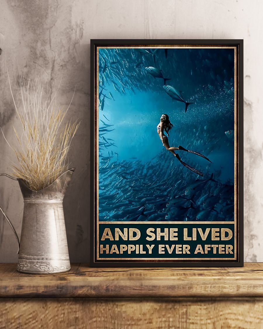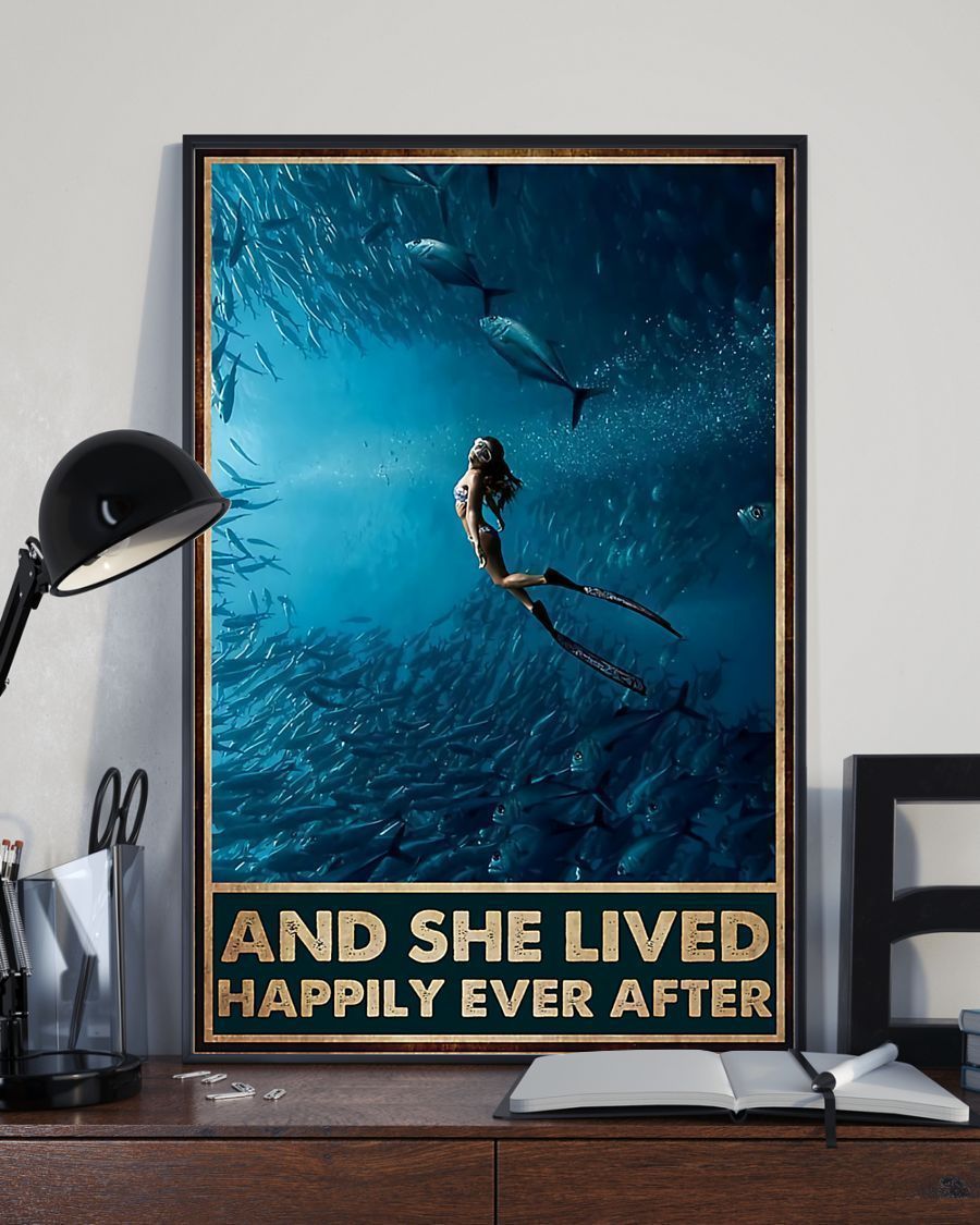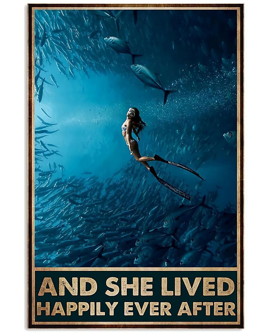 Scuba Diving – And She Lived Happily Ever After Vertical Canvas And Poster – Wall Decor Visual Art