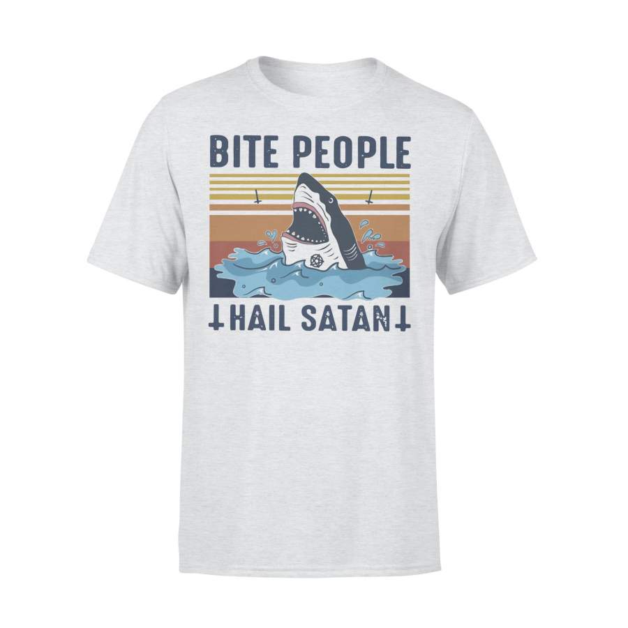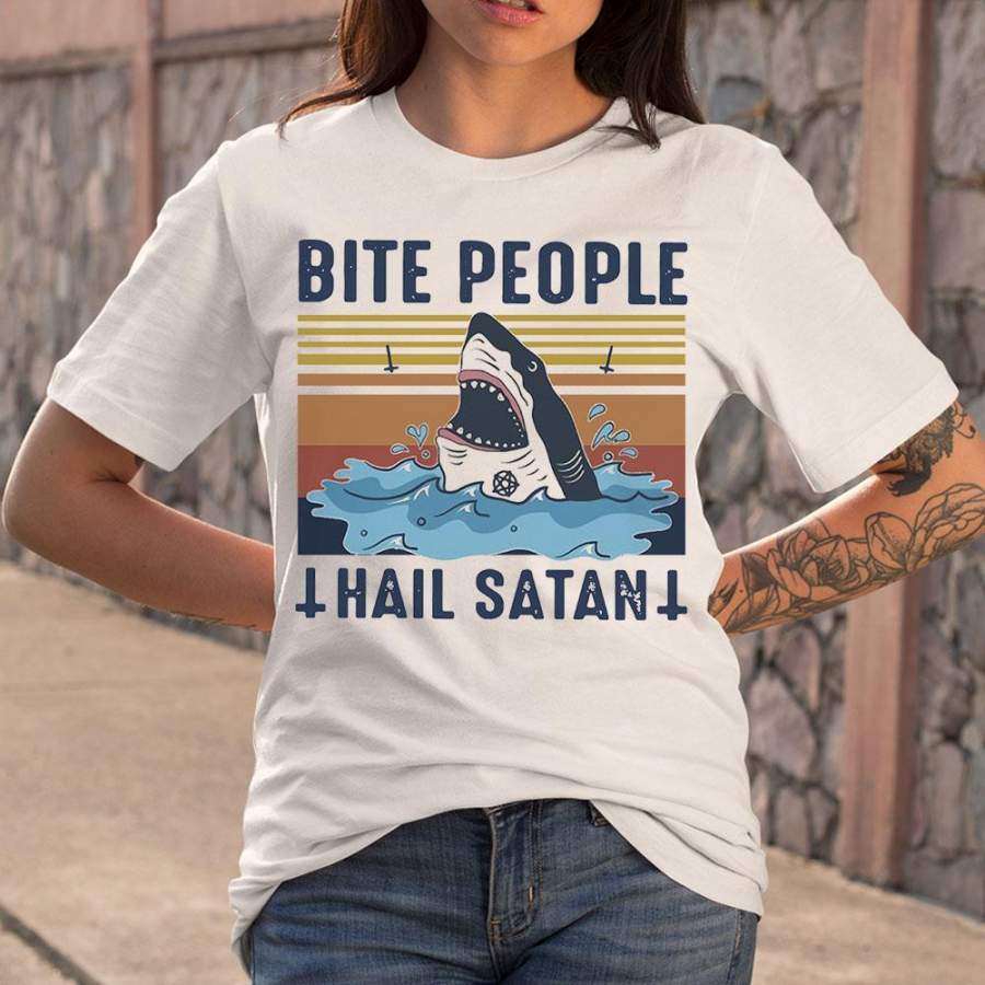 Shark Bite People Hail Satan Vintage Retro T-shirt