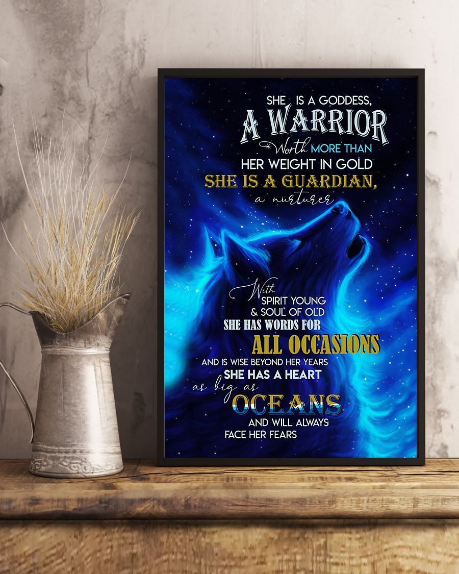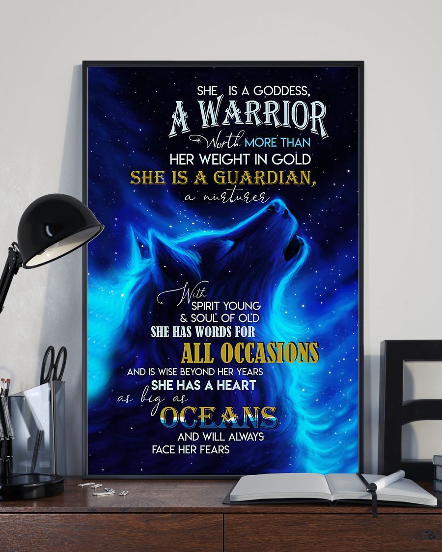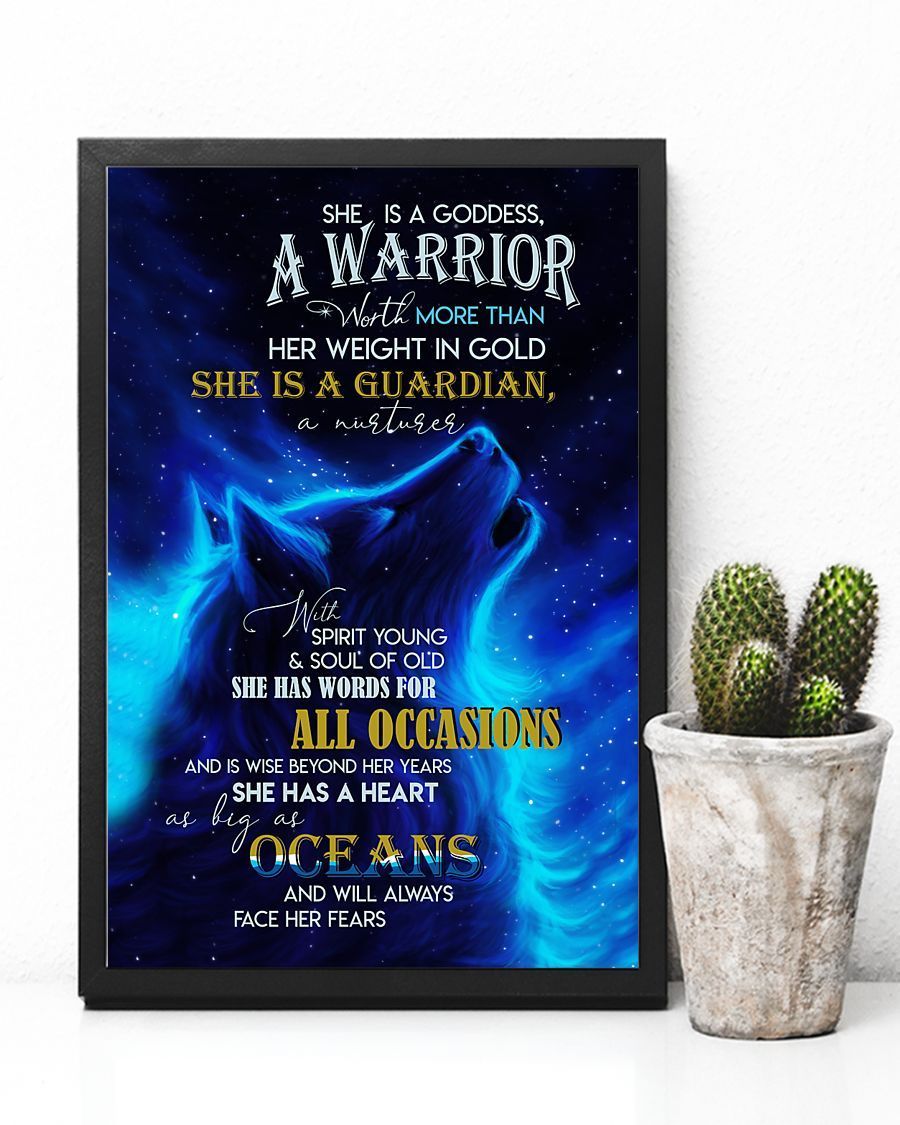 She Is A Goddess A Warrior Howling Wolf Galaxy Vertical Poster