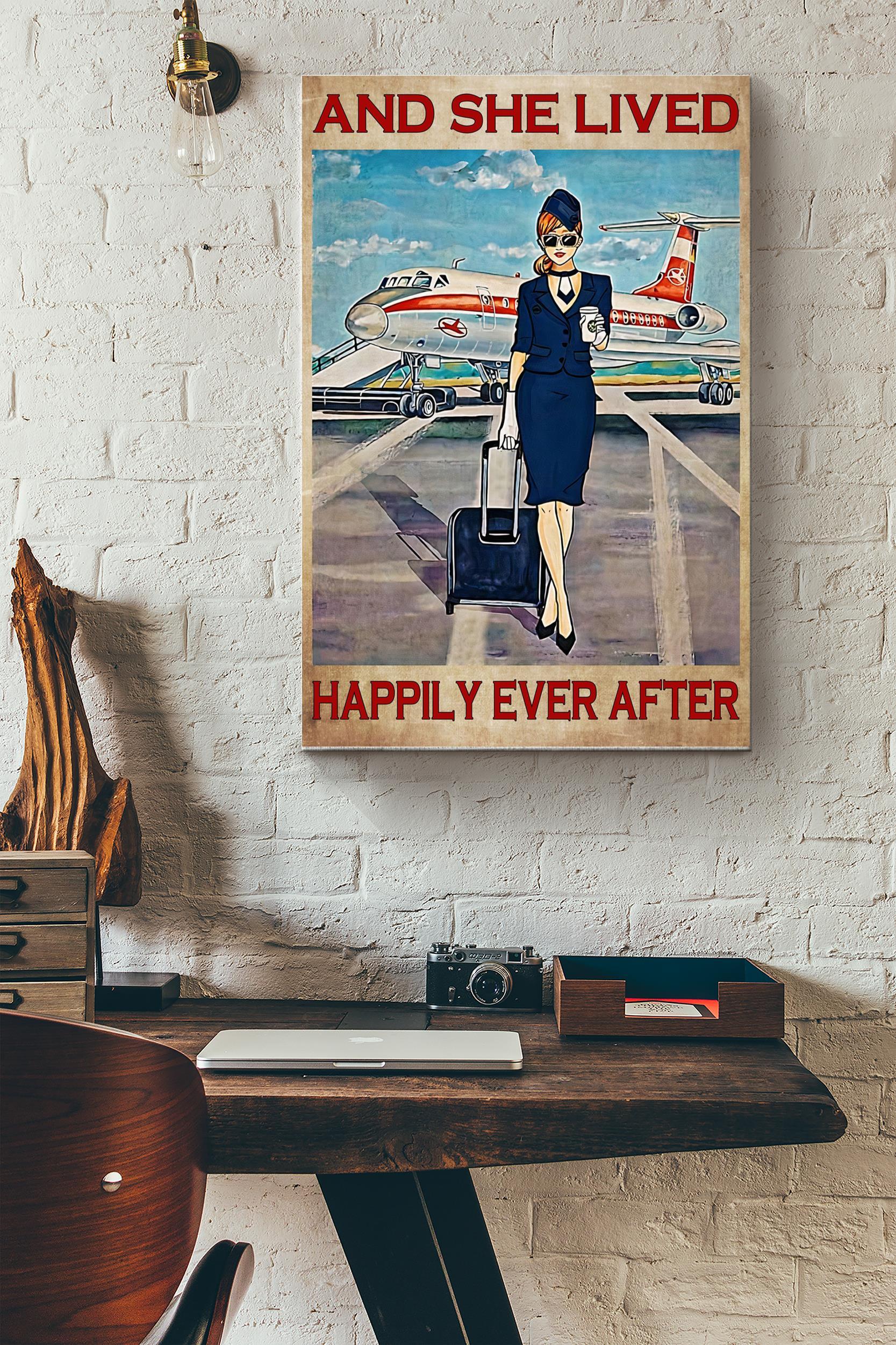 She Lived Happily Ever After Vintage Poster – Decor Wall Art – Gift For Flight Attendants Pilot Sky Lover Flight Lover Wrapped Canvas