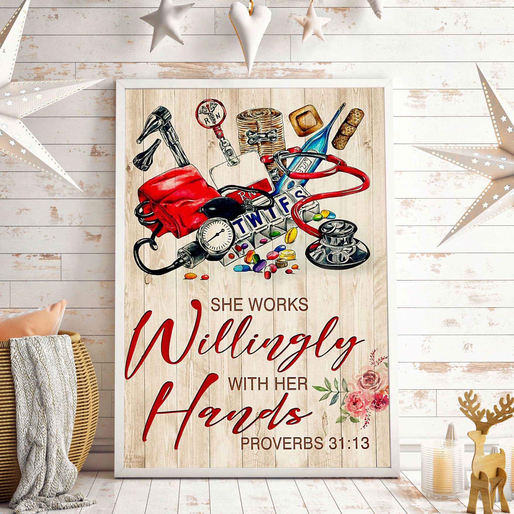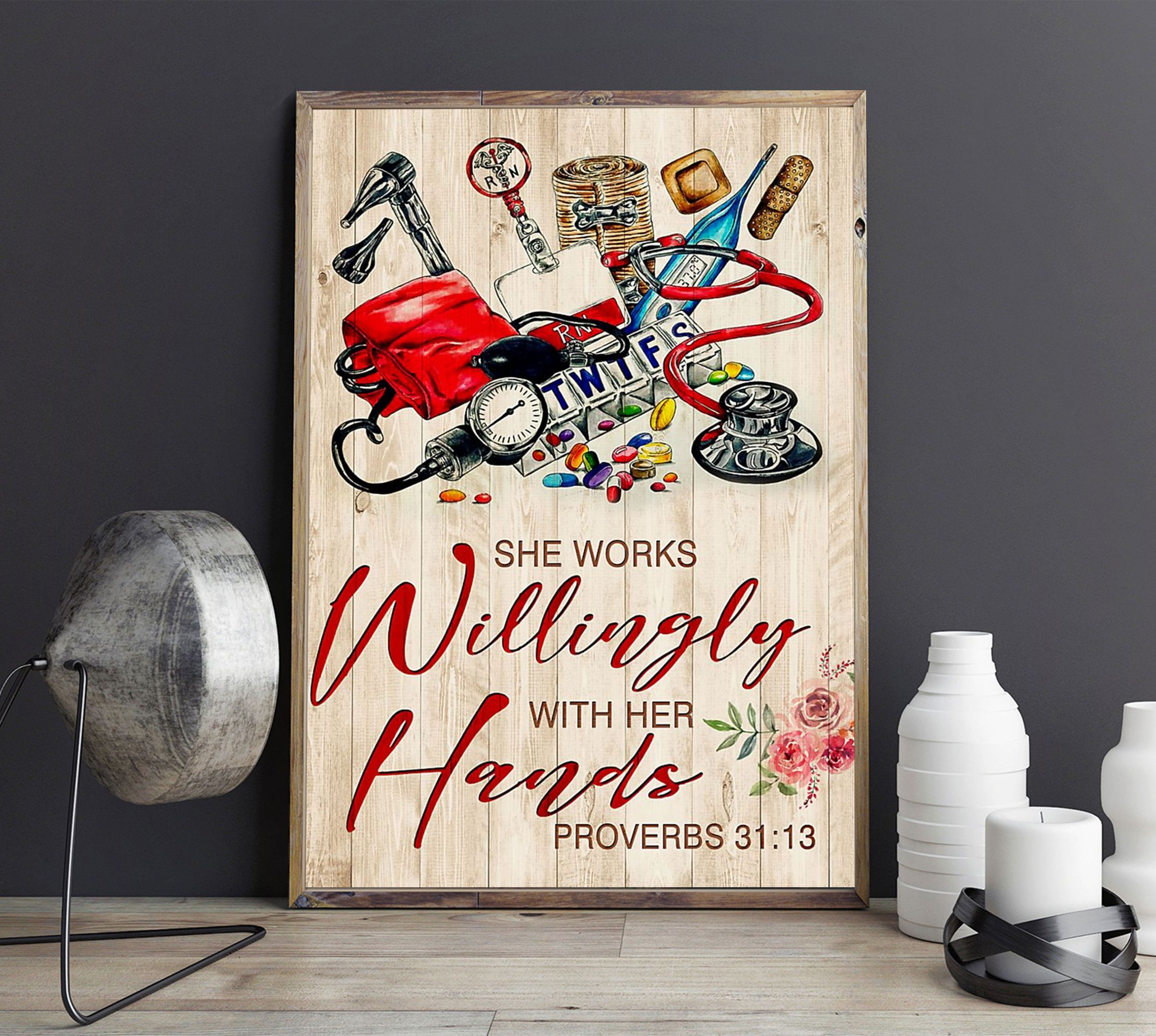She Works Willingly With Her Hands Proverbs Esther Vertical Poster