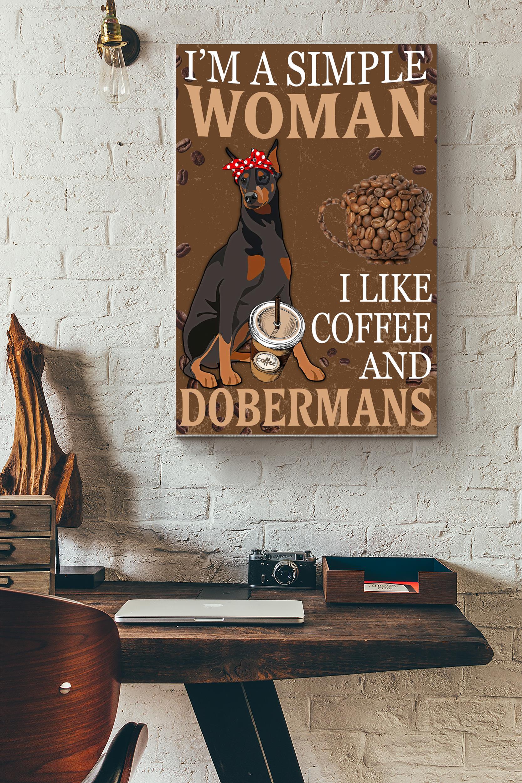 Simple Woman Like Coffee And Dobermans Poster Vintage Wall Art Gifts Wrapped Canvas