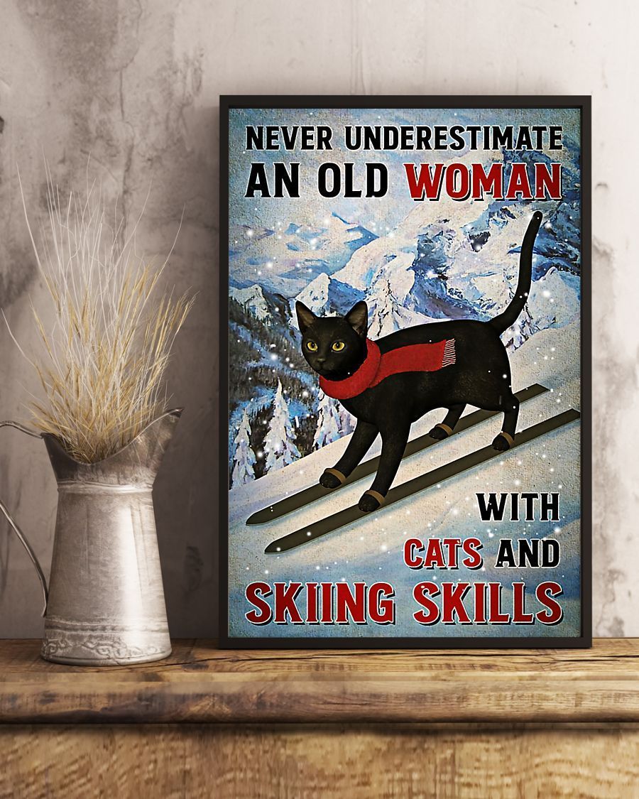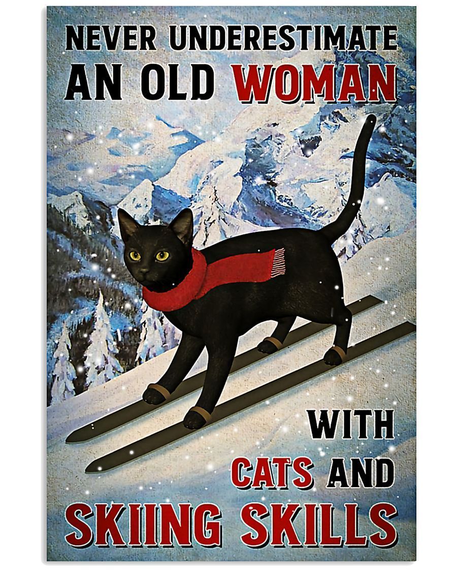 Skiing An Old Woman With Cats And Skiing Skills Vertical Canvas And Poster – Wall Decor Visual Art