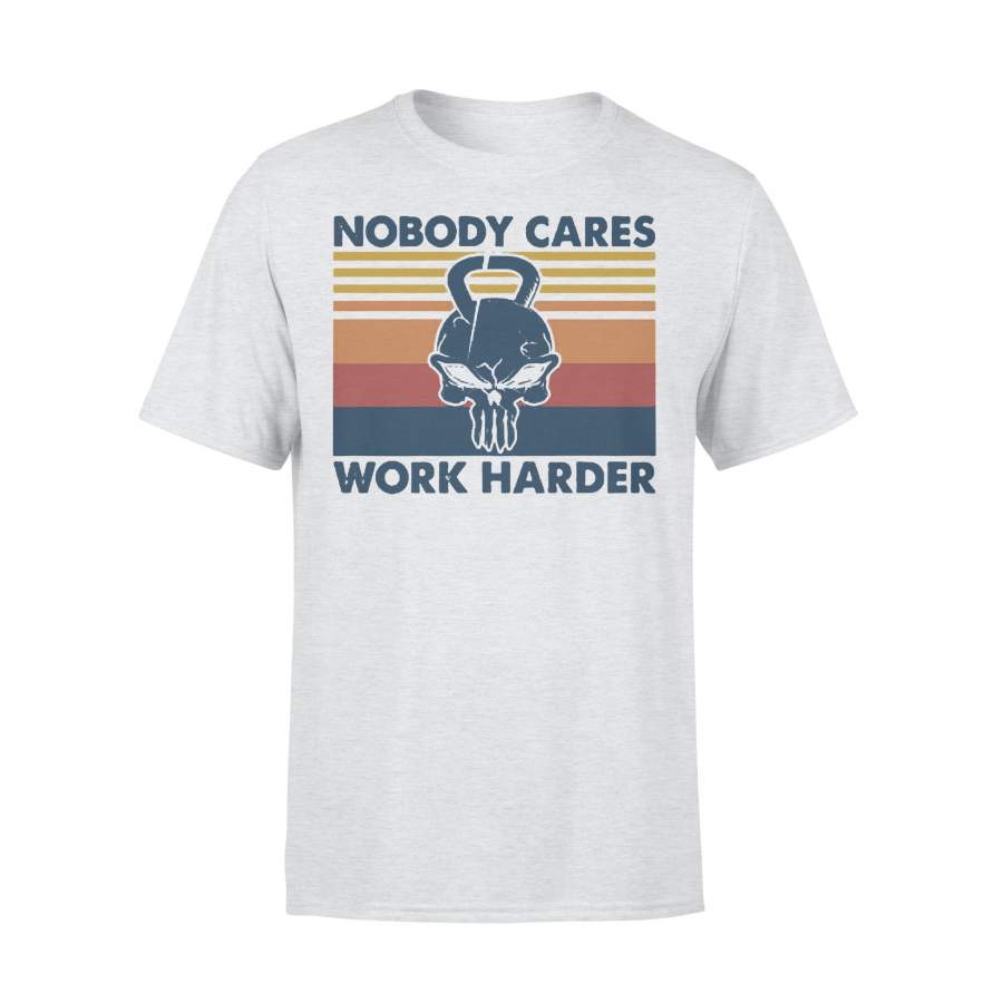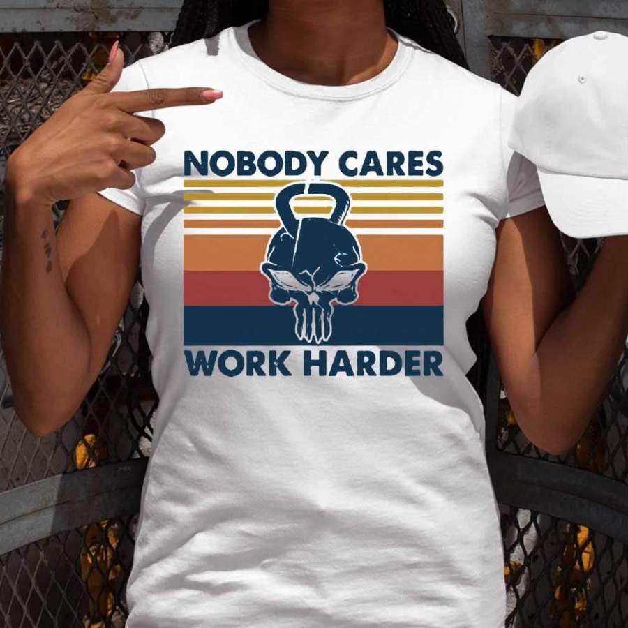 Skull Weightlifting Nobody Cares Work Harder Vintage Retro T-shirt
