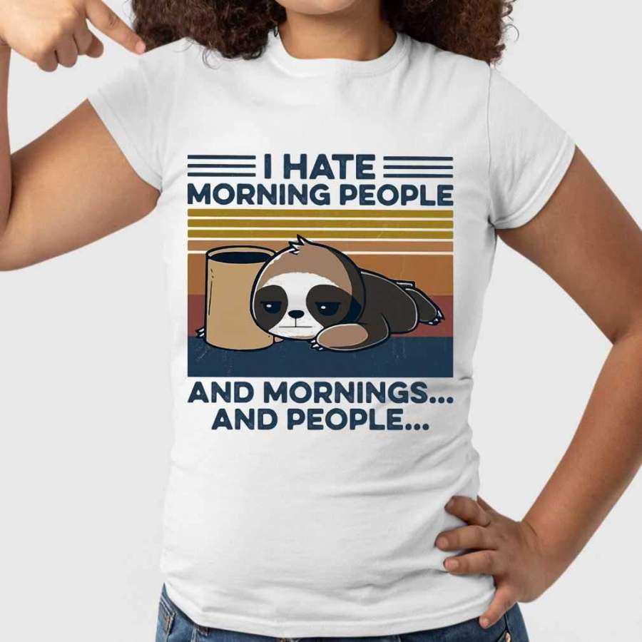 Sloth Drinking Coffee I Hate Morning People And Mornings And People Vintage Retro T-shirt