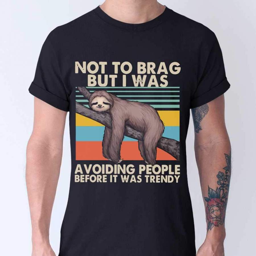 Sloth Not To Brag But I Was Avoiding People Before It Was Trendy Vintage T-shirt