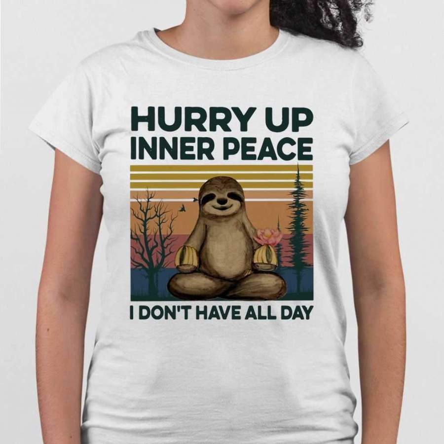 Sloth Yoga Hurry Up Inner Peace I Don’t Have All Day Vintage T-shirt
