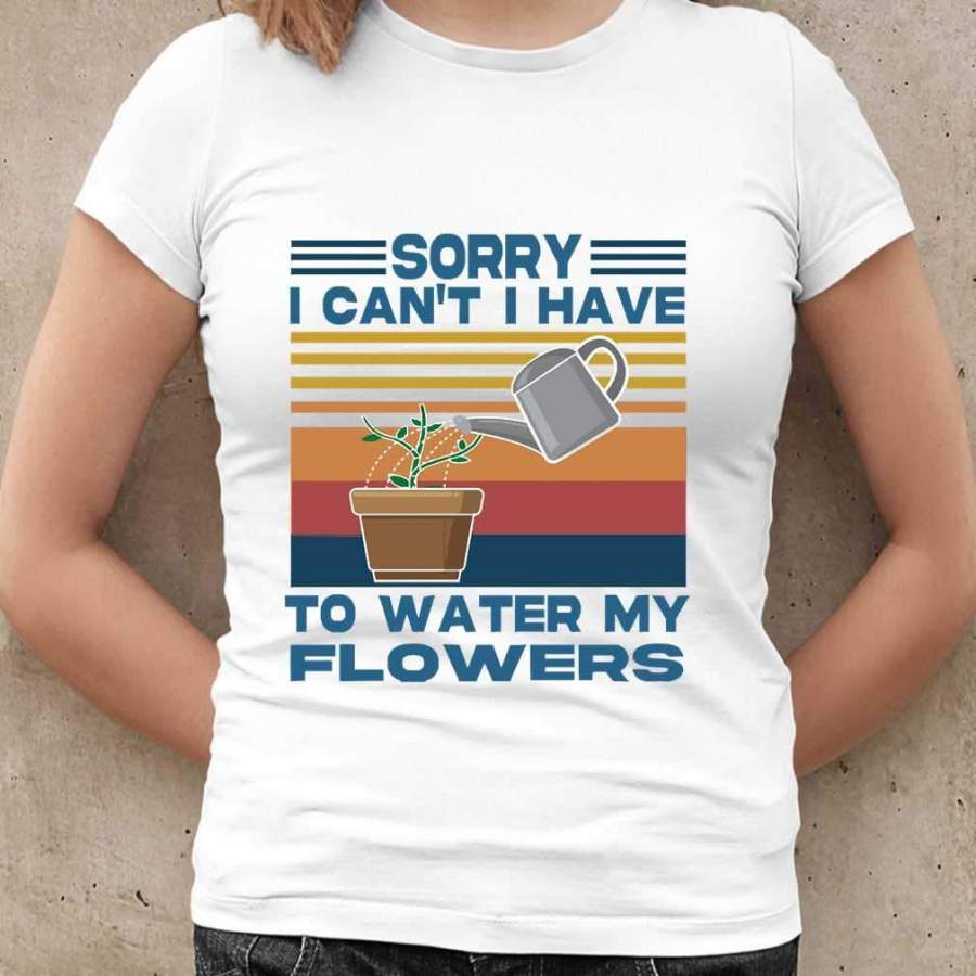 Sorry I Can’t I Have To Water My Flowers Gardening Vintage Retro T-shirt