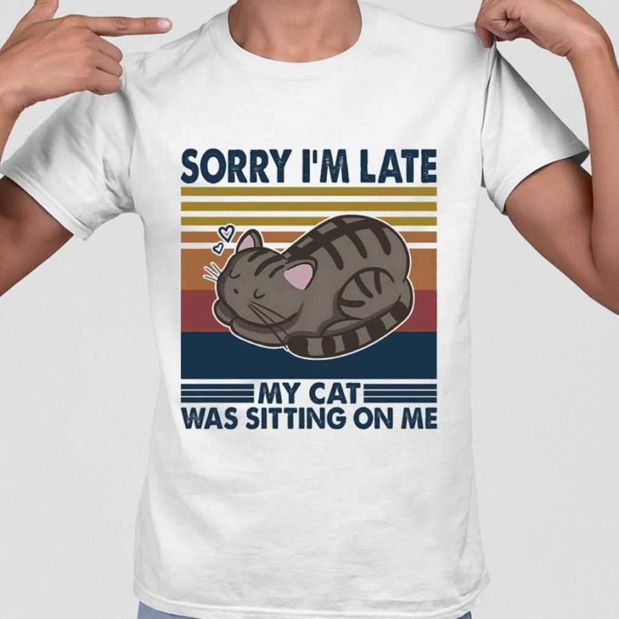 Sorry I’m Late My Cat Was Sitting On Me Cat Vintage Retro T-shirt