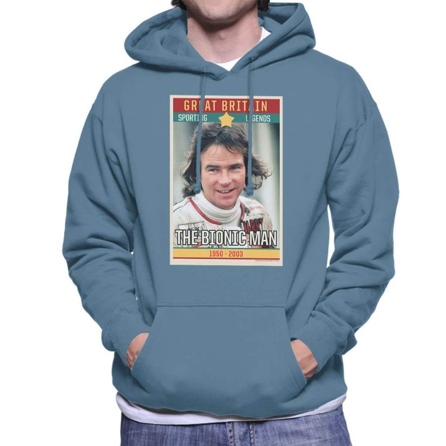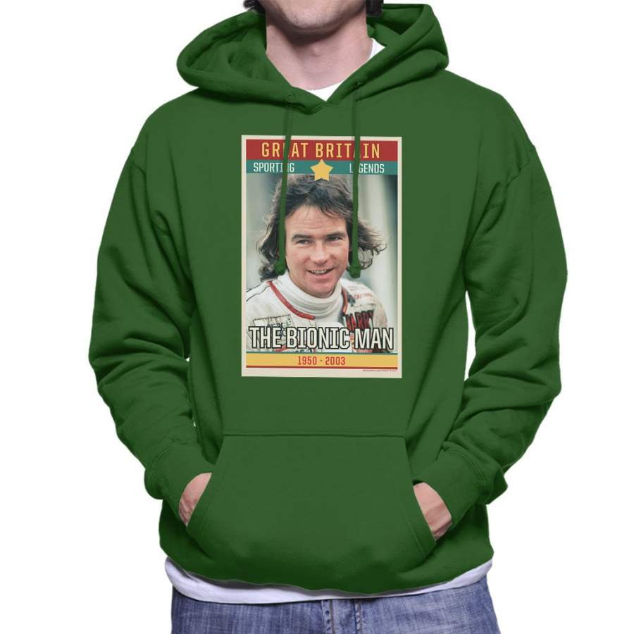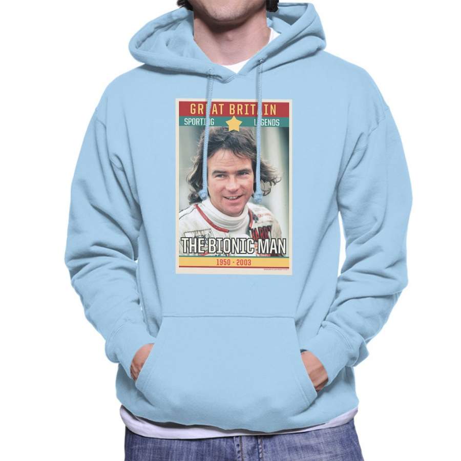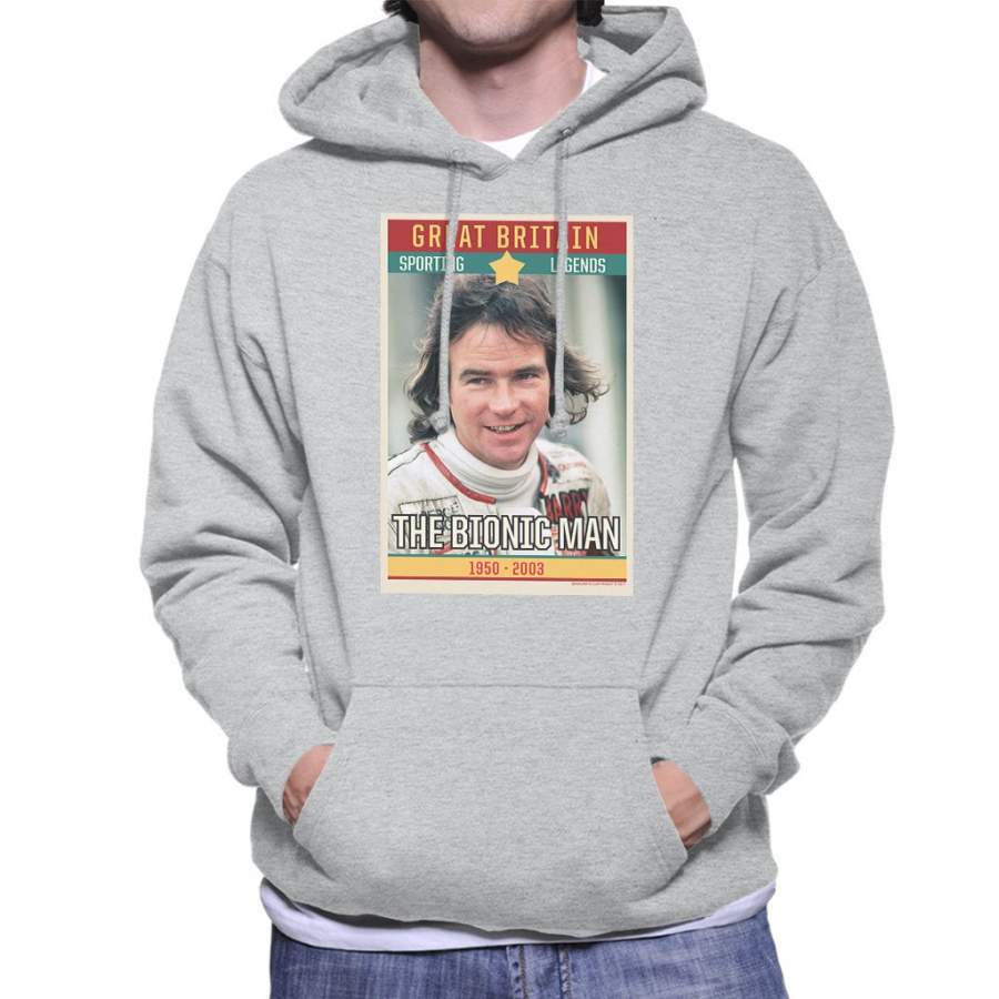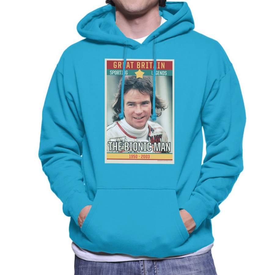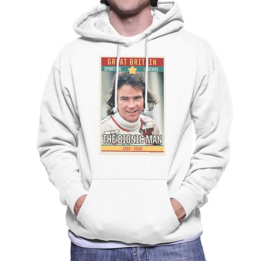 Sporting Legend Poster UK Barry Sheene Bionic Man World Motor Cycle Champion 1977 Men’s Hooded Sweatshirt