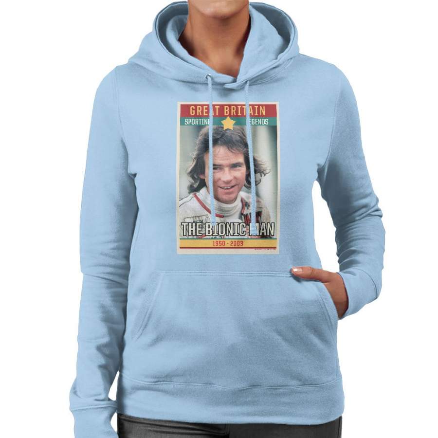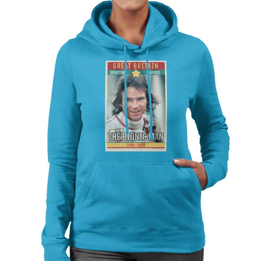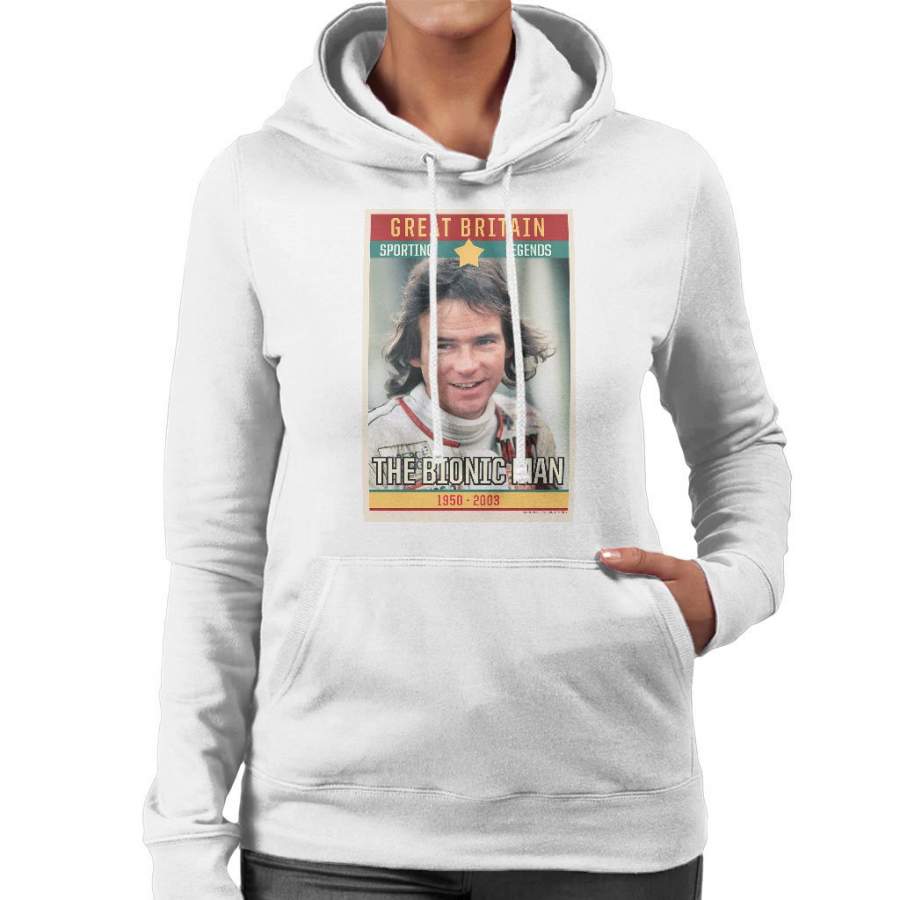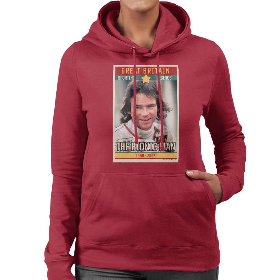 Sporting Legend Poster UK Barry Sheene Bionic Man World Motor Cycle Champion 1977 Women’s Hooded Sweatshirt